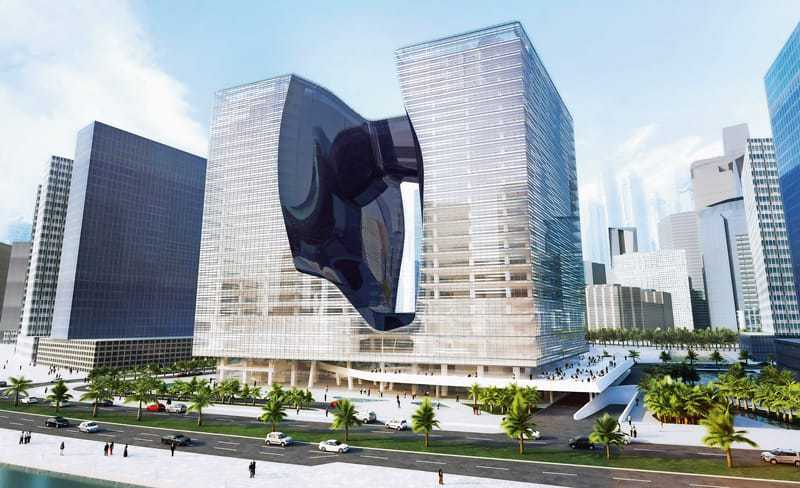 Wir bauen keine netten, kleinen Gebäude“, sagte Zaha Hadid 2013 dem britischen Guardian und meinte damit banale rechtwinklige Bauten. Für „The Opus“ auf der weltweit angesagtesten, architektonischen Spielwiese im Burj Distrikt, hatte Zaha Hadid die Vision eines Kubus. Ein 21-stöckiges Gebäude, das von innen ausgehöhlt wird und scheinbar über dem Erdgeschoss schwebt. Und tatsächlich, wie ein Eiswürfel, der gerade unter der heißen Wüstensonne dahinschmilzt, lässt „The Opus“ auch vom Gebäudeinneren den Blick frei auf die atemberaubende Architektur in der Umgebung: zum Dubai Water Canal, zum neuen Opernhaus oder zu Burj Khalifa und Dubai Mall. 2012 erfolgte der Baustart und im Oktober 2017 wurden die letzten Arbeiten an der Gebäudehülle abgeschlossen. Der Innenbereich wird ein 5-Sternehotel, Restaurants, Büroräume sowie Luxusapartments beherbergen.