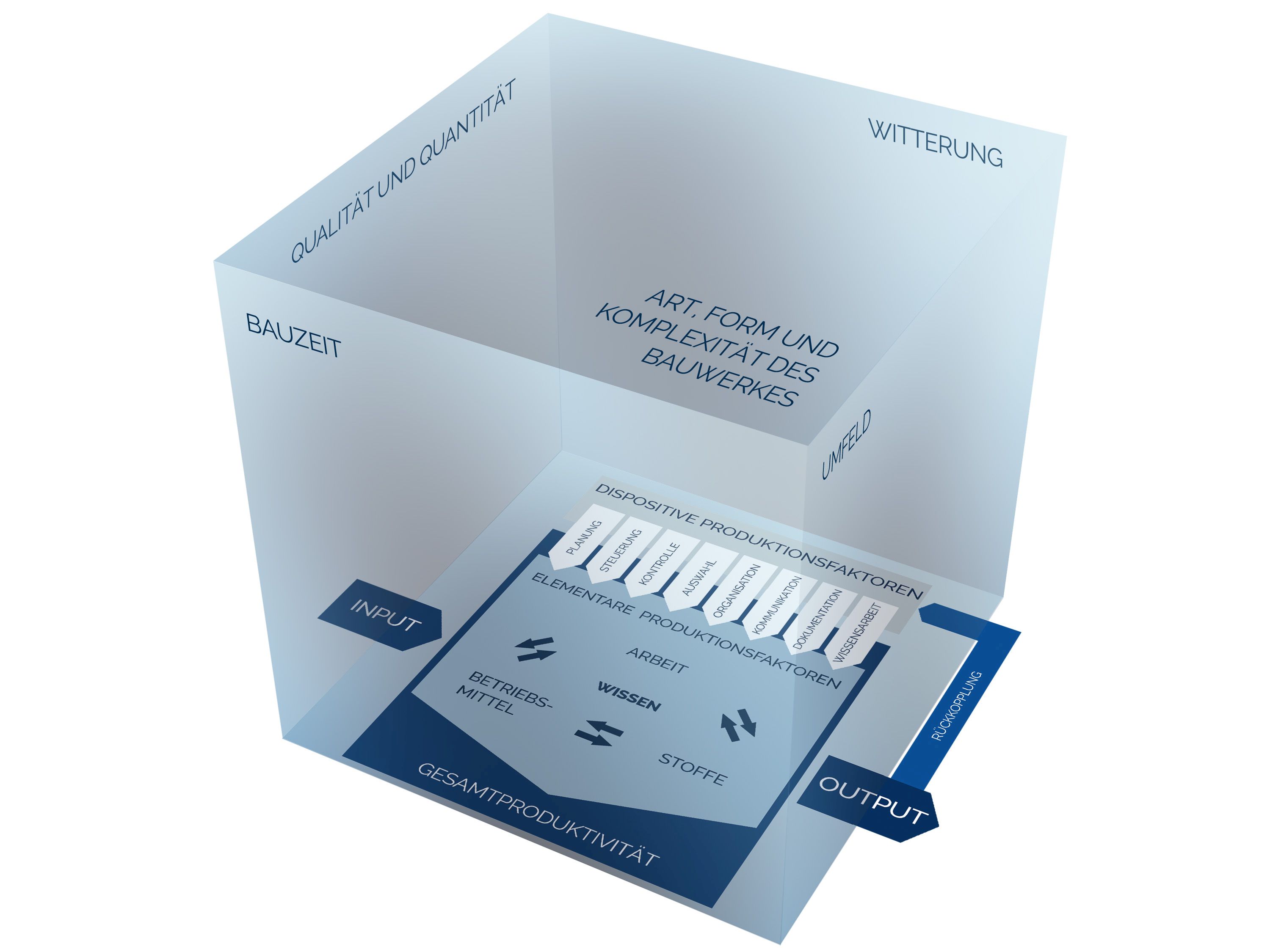 Für alle Ermittlungen (Schätzungen, Berechnungen, Entscheidungen etc.) innerhalb der unterschiedlichen Projektphasen eines Bauprojekts ist die Analyse und Bewertung des Produktionssystems (Abbildung 1: Produktionssystem im Baubetrieb) von entscheidender Bedeutung. Alle Projektbeteiligten sollten sich mit den Prozessen intensiv auseinandersetzen, um eine hohe Prognose- und Umsetzungsqualität zu erzielen. Das Erreichen einer hohen Projektmanagement-, Planungs- und Ausschreibungsreife erfordert für Bauprojekte einen entsprechenden Aufwand an Zeit und Geld. Eine hohe Planungsqualität beeinflusst direkt die Ausschreibungsqualität und bestimmt die erzielbare Planungs- und Ausschreibungsreife. Diese bildet wiederum die Basis für die Angebotskalkulationen und hat wesentlichen Einfluss auf die Kalkulationsrisiken für die Bieter.