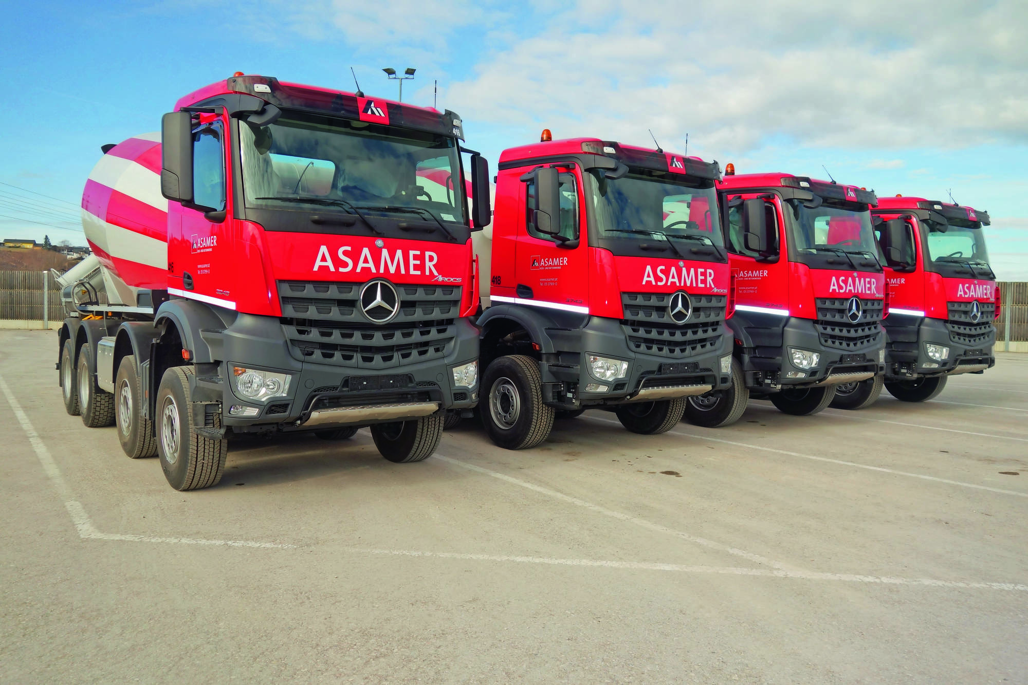 Mit rund 200 Hektar ist das Firmengelände der Asamer Kies- und Betonwerke GmbH in Ohlsdorf im Bezirk Gmunden mehr als großzügig. Das mehrfach erweiterte Gebäude der Firmenzentrale steht mit seiner zeitgenössischen Architektur in einem interessanten Kontrast zur ländlichen Idylle der unmittelbaren Nachbarschaft. Robert Pree verantwortet gemeinsam mit zwei Mitgliedern aus der Familie Asamer die Geschicke des 1959 gegründeten Unternehmens, dessen „Success stories“ nahezu alle prestigeträchtigen und herausfordernden Bauprojekte in Oberösterreich umfassen: Diese reichen von der Grünberg-Seilbahn über die „Neue Galerie Lentos“ bis zu Unterwasser-Betonarbeiten im Rahmen der „Ars electronica“. Robert Pree: „Bei derart speziellen Aufträgen sind wir die Nummer Eins!“ Dafür bedarf es nicht zuletzt einer großen und verlässlichen Lkw-Flotte. Aktuell umfasst der Asamer-Fuhrpark 120 eigene Lkw und ebenso viele Fahrer, die eigene Werkstätte beschäftigt 20 Personen. Weitere Aufträge werden an Transportunternehmer aus der Region vergeben. Mit wenigen Ausnahmen tragen fast alle Asamer-Lkw den Mercedes-Stern am Kühlergrill. Diese Präferenz für den Hersteller aus Süddeutschland hat sich in Ohlsdorf über viele Jahre entwickelt: „Die Marke begleitet uns von Anfang an, unsere Mechaniker sind historisch mit den Weiterentwicklungen der Produkte mitgewachsen und zu Spezialisten für Mercedes-Fahrzeuge geworden.“ Die Asamer-Lkw sind in ganz Oberösterreich unterwegs, die Betonmischer (mit Liebherr-Aufbau) erreichen eine Jahresfahrleistung von 40.000 km, die Kies-Fahrzeuge absolvieren bis zu 100.000 km jährlich. „Mit der Beschränkung auf eine Marke sind wir auch bei den Ersatzteilen sehr flexibel“, ergänzt Robert Pree.