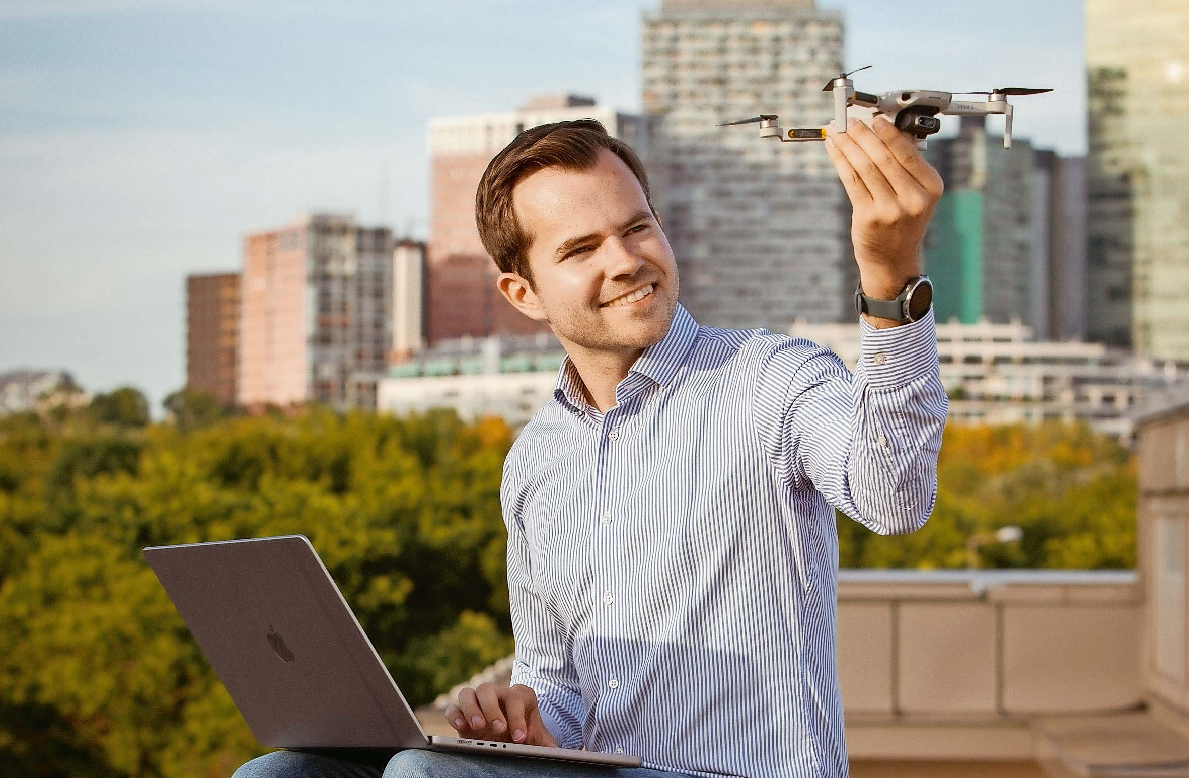 "Man könnte eine Drohne fix auf einer Baustelle installieren, damit sie dort selbstständig bestimmte Aufgaben übernimmt. Sie könnte täglich eine Baustellendokumentation erstellen oder die Einhaltung der Sicherheitsvorschriften überwachen." Markus Bardach ist die Begeisterung für das Thema Drohnen am Bau anzumerken. Das liegt in der Natur der Sache. Bardach ist Geschäftsführer des Wiener Start-up-Unternehmens Skyzr, das sich auf die Vermittlung von Drohnenpilot*innen für den gewerblichen Einsatz spezialisiert hat. Seine wichtigste Kundschaft: die Bauwirtschaft. Rund die Hälfe seiner Aufträge erhält das Unternehmen aus der Baubranche.