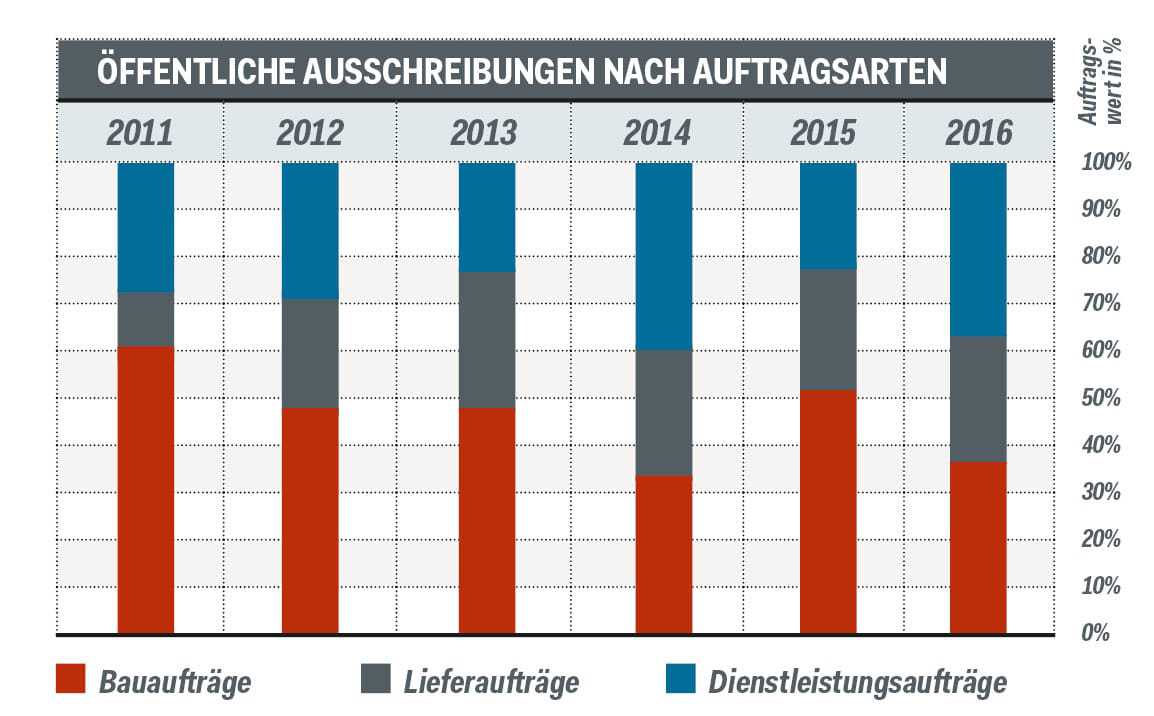 Öffentliche Aufträge gewinnen immer stärker an Bedeutung, allein im August wurden nach Statistiken des Auftragnehmerkataster Österreich (Ankö) hierzulande 820 Ausschreibungen veröffentlicht. Das entspricht einem Plus von 16,6 Prozent im Vergleich zum Vorjahreszeitraum. Trotzdem gab es aber bisher international und national wenig zuverlässige und systematisch erhobene Daten zum Vergabemarkt. Um diese Lücke zu füllen, hat der Fachbereich Finanzwissenschaft und Infrastrukturpolitik der TU Wien unter Leitung von Johann Bröthaler im Auftrag des Ankö erstmals für Österreich eine umfassende Studie erstellt. Das Ergebnis: Der Vergabemarkt ist deutlich größer als bisher angenommen. Gingen Statistiken der EU und beispielsweise auch der OECD bisher von einem Vergabevolumen von rund 13 Prozent des heimischen BIP aus, müsse man hingegen vielmehr von rund 18 Prozent ausgehen. Insgesamt werden von 7.700 öffentlichen Auftraggebern jährlich zuletzt mehr als 60 Milliarden Euro vergeben, davon waren 2016 rund 37 Prozent Bauaufträge. Wie die Studie ebenfalls zeigt, sind im Vergabebereich Daten aber oftmals nicht oder nur in schlechter Qualität verfügbar. Deshalb griff man auf zwei Datenquellen zurück: zum einen auf die Ausgaben in Budgets öffentlicher Stellen. Ergänzt wurden diese Ergebnisse zum anderen mit den Daten, die von öffentlichen Auftraggebern über Bekanntmachungen selbst veröffentlicht werden. Vor allem hier sind die Daten oft unvollständig.