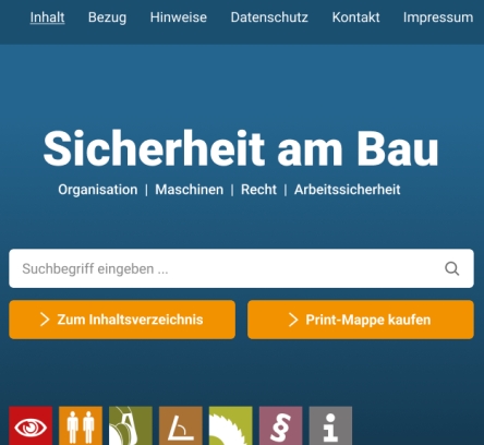 Die Mappe „Sicherheit am Bau“, kurz „Baumappe“, ist seit vielen Jahren ein Standardwerk für die Arbeitssicherheit auf Baustellen und in nahezu jedem Baucontainer verfügbar. Sie bildet im Wesentlichen die Bauarbeiterschutzverordnung in Wort und Bild ab und zeichnet sich durch ihre gute Lesbarkeit für die Baupraxis aus. Wesentlich bei der Baumappe ist, dass Abbildungen und Grafiken ein anschauliches Bild der wichtigsten Grundregeln zur Arbeitssicherheit vermitteln.