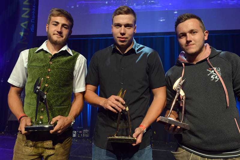 Die drei besten Spengler des diesjährigen Bundeslehrlingswettbewerbs (v. l.): Alexander Hollaus (Zweiter), Gewinner Andreas Bechtold und Mark Krause (Dritter).