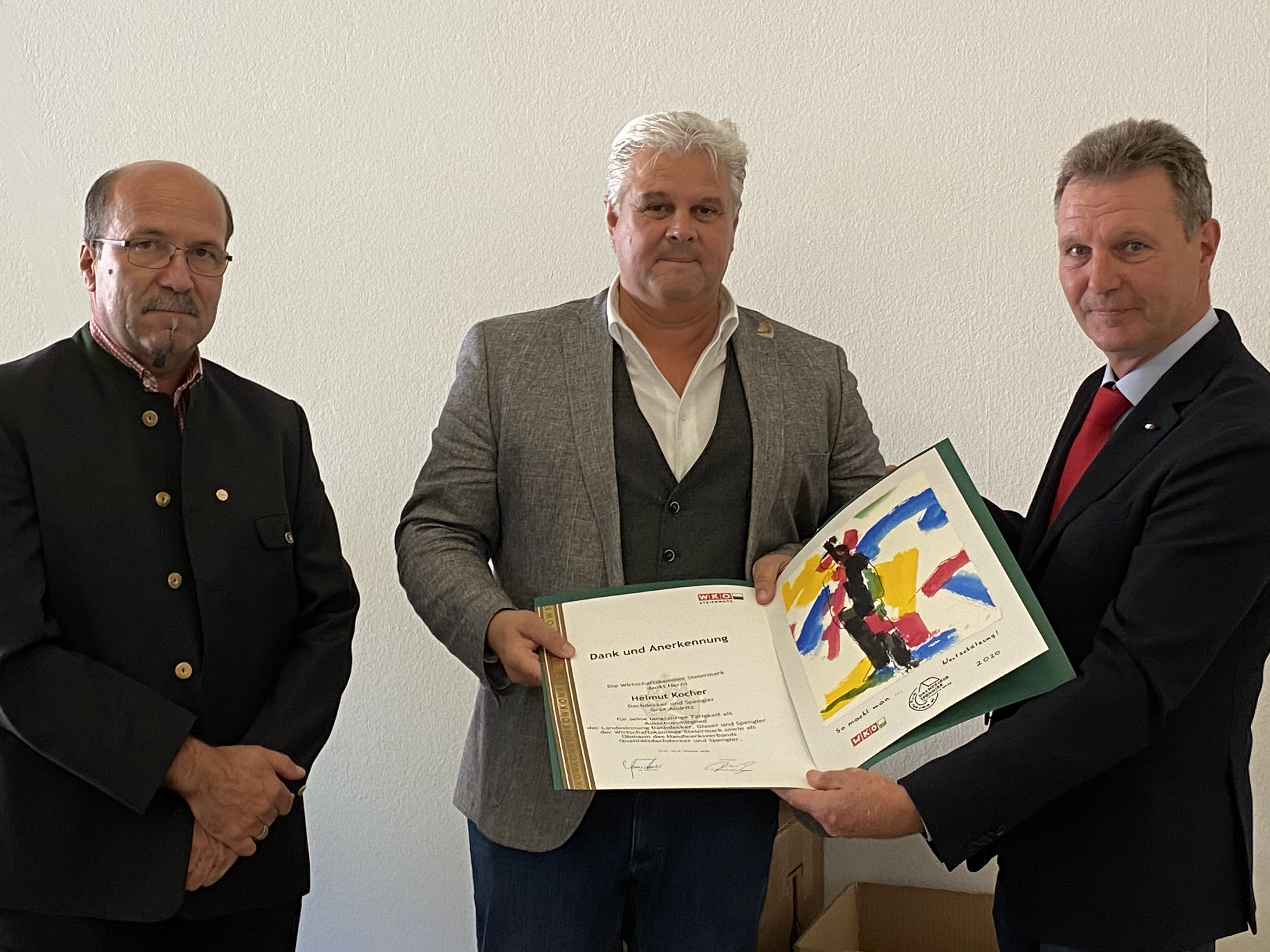 Daraus wurde eine Erfolgsgeschichte mit aktuell 33 Betrieben und 13 namhaften Sponsorpartnern. Dennoch – aus gesundheitlichen Gründen tritt Kocher nun zurück und Spenglermeister Rudolf Rathkolb aus Graz-Umgebung übernimmt die Führung. Als Dankeschön bekam Kocher ein Aquarell vom Künstler Andreas Gratze durch LIM Schabauer und Neoobmann Rathkolb überreicht.