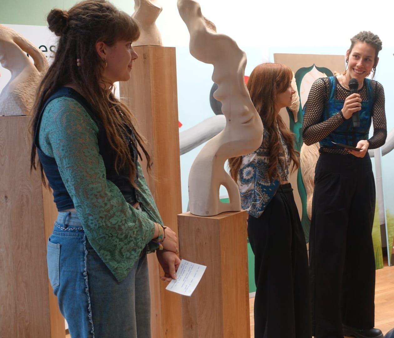 Die Besucher hatten zudem die Möglichkeit, die Abschlussarbeiten der Schülerinnen und Schüler der vierten Klassen zu bewundern. Diese reichten von einem Leitsystem für ein Tierheim bis hin zu einem Rednerpult, das speziell für die Veranstaltung angefertigt wurde. Die Schüler hatten auch kreative Projekte für lokale Organisationen entwickelt, wie eine Skulpturengruppe für einen Therapiegarten in Osttirol und eine zeitgenössische Interpretation der Maria Verkündigung für den Krippenverein Wenns.