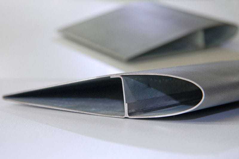 Bei Rotorblättern von kleineren Windkraftanlagen hat der Werkstoff Metall durchaus Chancen gegenüber faserverstärktem Kunststoff. Der Grund liegt in den Möglichkeiten der Wiederverwertung am Ende des Lebenszyklus.