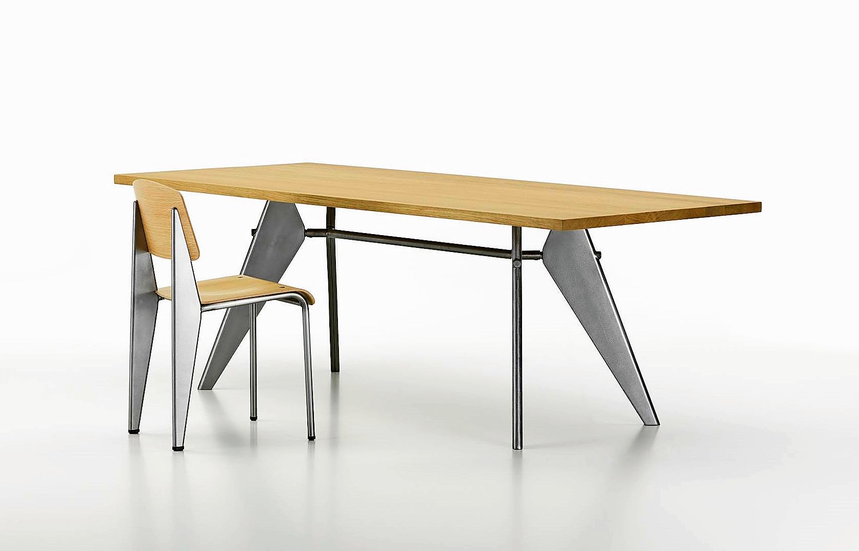 Im Café Prouvé werden nun eine Auswahl der neu aufgelegten Designstücke präsentiert. Etwa der Sessel "Standard" aus Metall und Holz. Diesen Sessel fand man früher in ganz normalen französischen Gendarmerie-Stationen. Der minimalistische Designer kreierte Objekte, die für den alltäglichen Gebrauch optimal geeignet sind. Nicht nur durch ihr zeitloses Design, sondern auch wegen der robusten Materialien wie Stahlrohre und massive Holzplatten. Die statischen Grundsätze einer Stuhlkonstruktion lassen sich am Stuhl "Standard" demonstrieren: Weil die hinteren Beine das meiste Gewicht tragen, sind diese als voluminöse Hohlkörper konstruiert. Für die Vorderbeine genügt ein leichtes Stahlrohr.