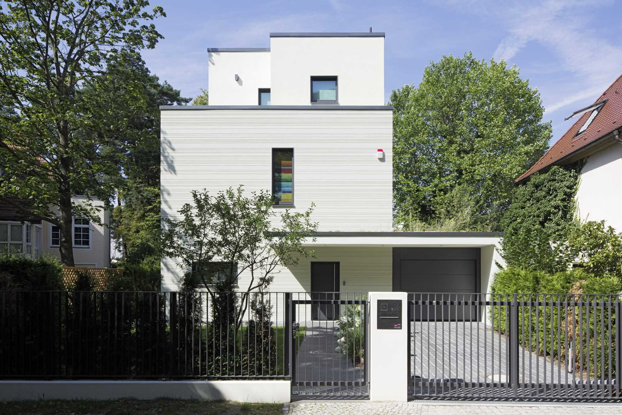 Während das Oberflächenfinish von Wärmedämm-Verbundsystemen oftmals stereotyp als glatter Scheibenputz ausgebildet wird, überrascht das Wohnhaus in Berlin mit einer sehr ungewöhnlichen Fassadengestaltung. Der Architekt hatte die Idee, die geradlinige, schlichte Kubatur des Einfamilienhauses durch eine individuelle Bossierung in Szene zu setzen. Ein Streifenmuster, das dem Wohnhaus eine einmalige Struktur verleihen sollte. Durch die individuell angefertigten Bossenplatten sollten architekturbegleitende Strukturen entstehen, die Licht und Schatten bilden. Mit der Ausführung der Fassadengestaltung wurde der Holger Ohliger Malermeisterbetrieb, die Handwerker für Berlin Brandenburg, beauftragt.