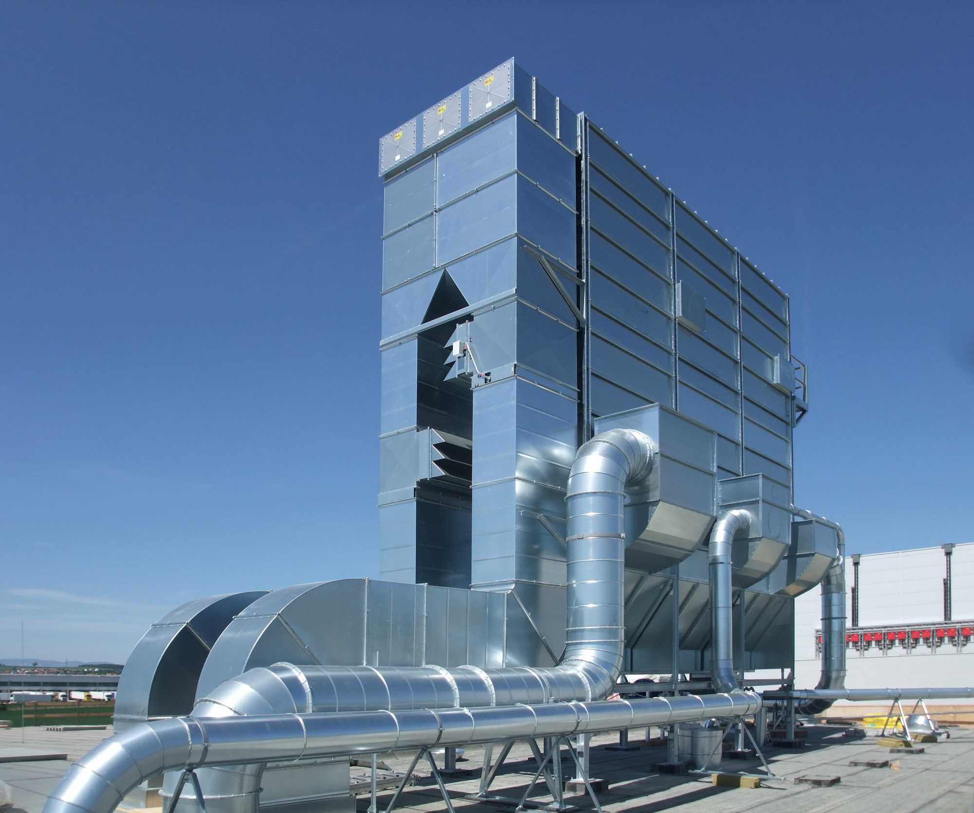 Auf dem Dach des neuen Werkes arbeitet ein MultiStar Spülluftfilter mit 768 m2 Filterfläche. Im Filteraufsatzmodul arbeiten vier frequenzgeregelte 37 kW Hochleistungs-reinluftventilatoren im Kaskaden-Stufensystem und liefern den für die Absaugung benötigten Unterdruck. Die Kombination einer Kaskadenschaltung mit der Frequenzregelung erlaubt die stufenlose Anpassung der Absaugleistung von 12.000m³/h bis hin zu 80.000 m³/h an die Anforderungen in der Produktion und senkt den Energieverbrauch spürbar auf ein Minimum. Im Schaltschrank wurde eine über ein Touchpanel leicht zu bedienende Prozessvisualisierung integriert. Der Anwender hat so einen einfachen Zugriff auf die aktuelle Anlagenauslastung.