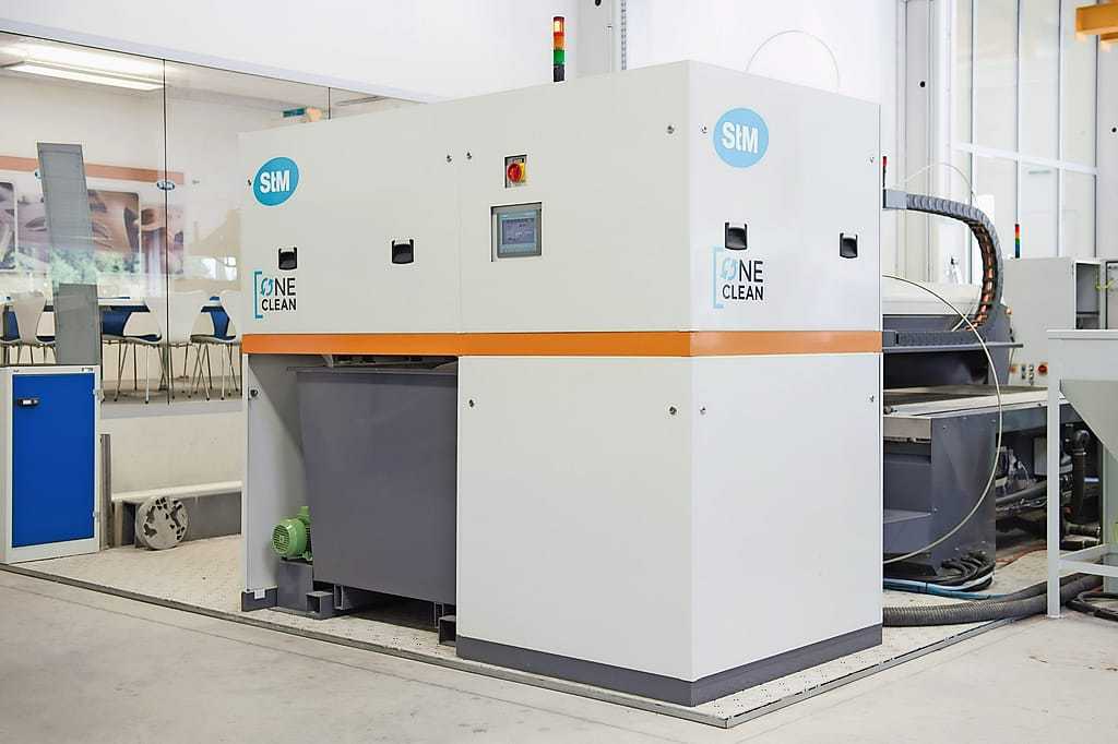 Das Abrasiv Recycling ist eines von fünf zueinander in Beziehung stehenden Modulen des OneClean-Systems. Die Anlage könne laut Moser schon mit einem kleinen Investment in Betrieb gesetzt und nach Bedarf jederzeit erweitert werden. Alle Module seien hochqualitative Markenkomponenten, die von STM mitentwickelt wurden. Eine durchgehend solide Konstruktion, sowie ein Zentralrahmen aus Edelstahl und die Verkleidung aus Aluminium garantieren Verschleißfestigkeit und Belastbarkeit.
