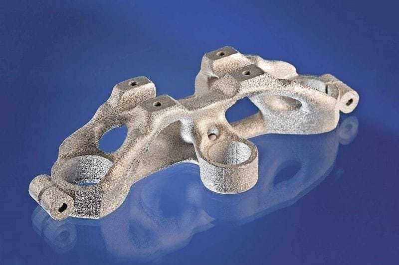 In der Luftfahrt und im Rennsport kennt man die Vorzüge von Magnesiumlegierungen schon lange: Sie sind 30 Prozent leichter als Aluminium, allerdings auch viel schwerer zu verarbeiten. Mit der neuen SLM-Prozesstechnik lässt sich dieses Verarbeitungsproblem nun lösen. Um dies im Detail zu untersuchen, hat man am Fraunhofer ILT eine Motorradgabelbrücke im Maßstab 1:4 als Demonstrator hergestellt. Dabei wurde am Computer die gesamte Topologie des Bauteils optimiert. Ziel ist dabei eine konsequente Struktur- und Gewichtsoptimierung für vergleichbare Leichtbauteile.
