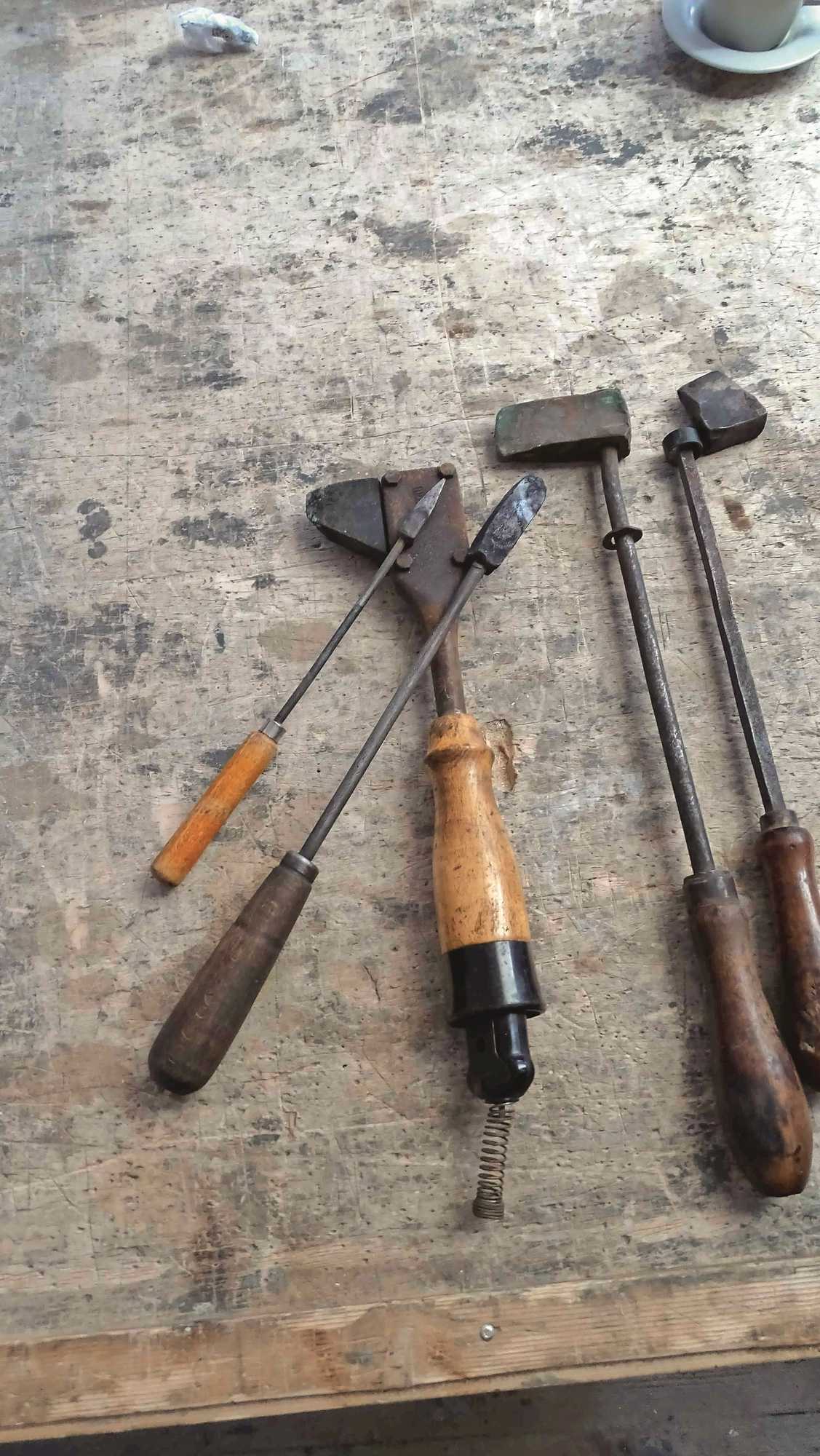 Da Glas Eberle sehr viel Restaurierungen von Kirchen, Klöstern und Schlössern durchführt, wird hier nicht nur eine moderne Glaserei betrieben, sondern auch noch die althergebrachte Handwerkskunst gepflegt und ausgeführt. Deshalb sind dort auch noch verschiedene ältere Glaserwerkzeuge erhalten. Tobias Eberle hat nun in seiner Werkstatt gesucht und ist auch fündig geworden. Neben verschiedenen älteren Lötkolben wurden auch zwei Trenneisen mit Kupferspitze gefunden, die sowohl zum Trennen wie verstärkt aber auch zum Löten verwendet wurden und deshalb mit Kupferspitzen versehen waren.