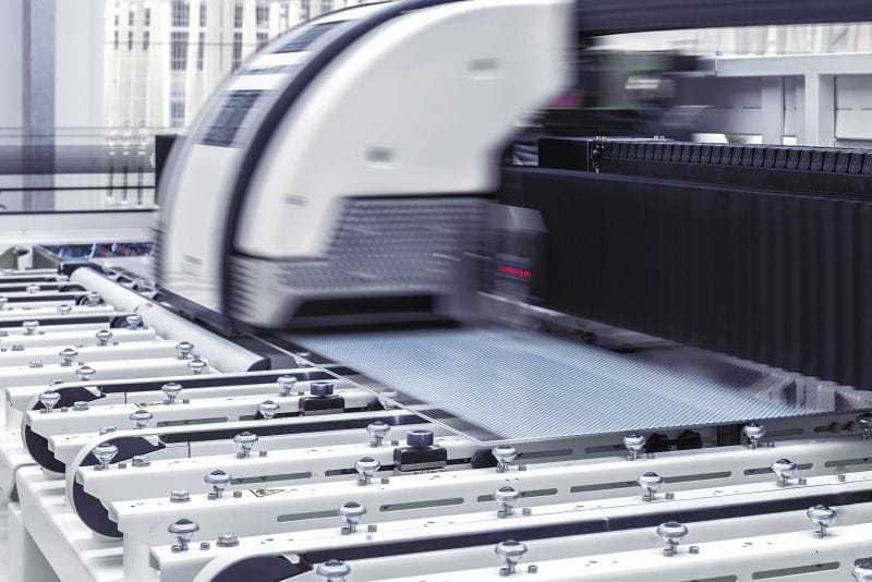 Ein Beispiel für moderne Hochgeschwindigkeits-Produktionstechnik ist die „speed´line“ der schweizerisch-deutschen Unternehmensgruppe Bystronic glass. In dieser Isolierglas-Fertigungslinie sind die Arbeitsschritte so optimal auf die Fertigung von Dreifach-Einheiten ausgelegt, dass schnellste Taktzeiten erreicht werden. Mit der „speed´line“ lässt sich Dreifach-Isolierglas in der gleichen Zeit herstellen, in der andere Linien Zweifach-Einheiten fertigen. Die Komplettanlage beinhaltet zwei hintereinander angeordnete „tps’applicator“-Komponenten für das Aufbringen der thermoplastischen Abstandhalter, den „speed’assembler“ zum schnellen Zusammenbauen und Gasfüllen der Isolierglas-Einheiten sowie den Versiegelungsautomaten „speed’sealer“.