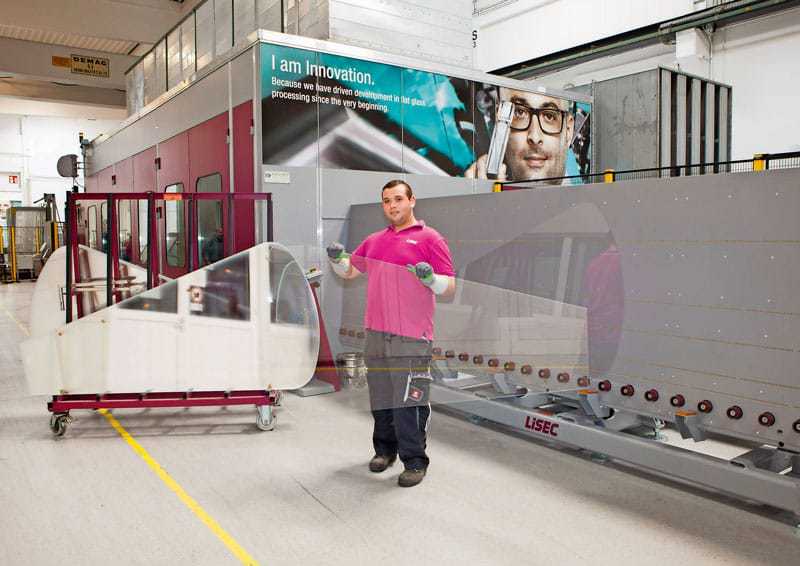 Komplexe Blumenblätter. Jede smart-flower besteht aus zwölf Blättern. Ein solches Blatt schaut auf den ersten Blick unspektakulär aus. Andreas Winter, Geschäftsführer Glass Forum: „Kein Hersteller traute sich das zu, wir sind weltweit der einzige Glasverarbeiter, der den Auftrag annehmen wollte.“ Jedes Blatt ist 2,1 Meter lang und hat einen Durchmesser von 1,2 Metern. Winter: „Die Blätter bestehen aus zwei Millimeter dünnem Weißglas. Jedes Glas bekommt einen C-Schliff und wird danach vorgespannt.“ Und es ist genau diese Kombination, die produktionstechnisch nicht ohne ist. Winter weiter: „Wir verfügen über eine vertikale Bearbeitungsmaschine und können anschließend vorspannen – und das mit optimaler Batchbelegung – alles hochautomatisiert.“ Momentan stellt Lisec im Glass Forum etwa 1.200 solche Scheiben im Monat her. Winter nicht ohne Stolz: „Die Herstellung läuft wie am Schnürchen: Die Qualität passt, wir schaffen die Liefertermine und Ausschuss ist nahezu nihil. Über solche Aufträge, wo Lisec zeigen kann, was wir drauf haben, freue ich mich am meisten“.