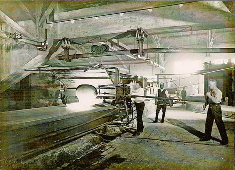 Nur eine einzige Glashütte erzeugte noch Flachglas, in Bürmoos in Salzburg. Hier wurde Fensterglas im Mundblasverfahren hergestellt. Als Brennstoff stand der Torf aus dem umliegenden Moorgebiet zur Verfügung. Bürmoos ist durch Georg Rendls Roman „Die Gasbläser von Bürmoos“ bekannt, in dem er sehr ausführlich und anschaulich die Lebensweise und die unglaublich schweren Arbeitsbedingungen der Glasbläser beschreibt. Sie sehnten „die Maschine“ herbei und fürchteten gleichzeitig um ihren Arbeitsplatz. Es ist also nicht verwunderlich, dass verschiedenste Überlegungen zur Gründung neuer Glashütten angestellt wurden.