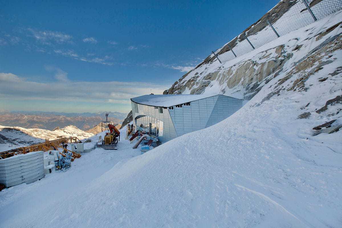 Die verschärften Konditionen, die ein Bauplatz auf knapp 3.000 Metern Höhe mit sich bringt, mussten auch bei der Wahl der Bauweise mitberücksichtigt werden. Je nach Witterung beschränkt sich die für die Umsetzung nutzbare Zeit auf drei bis maximal fünf Monate im Jahr. Es gibt auch keinen normalen Schichtbetrieb. Gearbeitet wird maximal zwei Stunden am Stück, dann muss wieder eine Pause eingelegt werden. Die Bauarbeiter benötigen zwei bis drei Ersatzkleidungen. Wer nass ist, wird krank. Die harten Bedingungen erfordern ein Vielfaches der Arbeitsleistung, die normalerweise für den Bau einer solchen Größe nötig wäre. „Nur eine gewisse Schar an hochalpin gut vorbereiteten Personen tut sich die Strapazen überhaupt an“, so der Architekt anerkennend. Eine große Herausforderung stellt zudem die Logistik dar. „Nur weil man den Helikopter an einem bestimmten Tag bestellt hat, heißt das noch lange nicht, dass er an diesem Tag auch starten kann. Dadurch verschiebt sich die gesamte Terminplanung schnell nach hinten“, so Zeytinoglu.