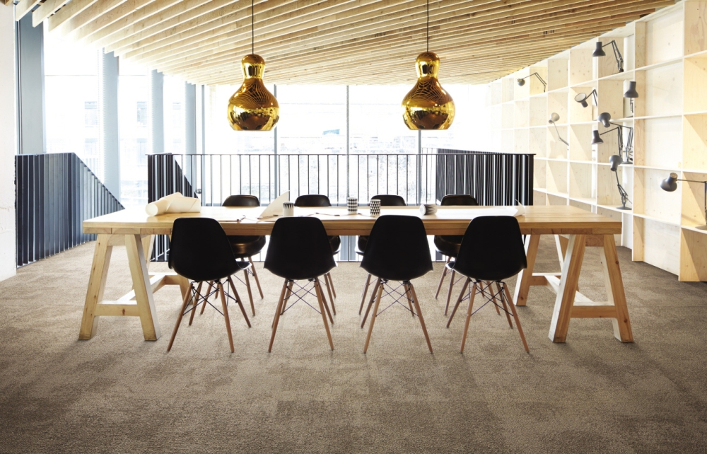 Eines der mit dem Blauen Engel ausgezeichneten Produkte ist die Teppichfliesenkollektion Composure mit Graphlex Rücken. Ihr organisches Design ermöglicht eine richtungsfreie Verlegung. Dadurch reduziert sich der Verschnitt auf nur ein bis zwei Prozent. Aus ihren Erd- und Pastelltönen sowie den abgestuften, kräftigen Farben lassen sich harmonische Verläufe in der Verlegung kreieren. Auch das Material selbst zeichnet sich durch seine hohe Umweltfreundlichkeit aus. Die tuftgemusterte strukturierte Schlingenqualität aus Solution Dyed Polyamid hat einen Recyclinganteil von 75 Prozent. Wie alle Produkte von Interface – Teppichfliesen, LVT-Bodenbeläge und nora Kautschukböden – ist die Kollektion über den gesamten Produktlebenszyklus hinweg CO2-neutral. Interface bietet zudem verschiedene Möglichkeiten zur Rücknahme der Produkte an, wie zum Beispiel Wiederverwendung, Recycling oder Energiegewinnung.