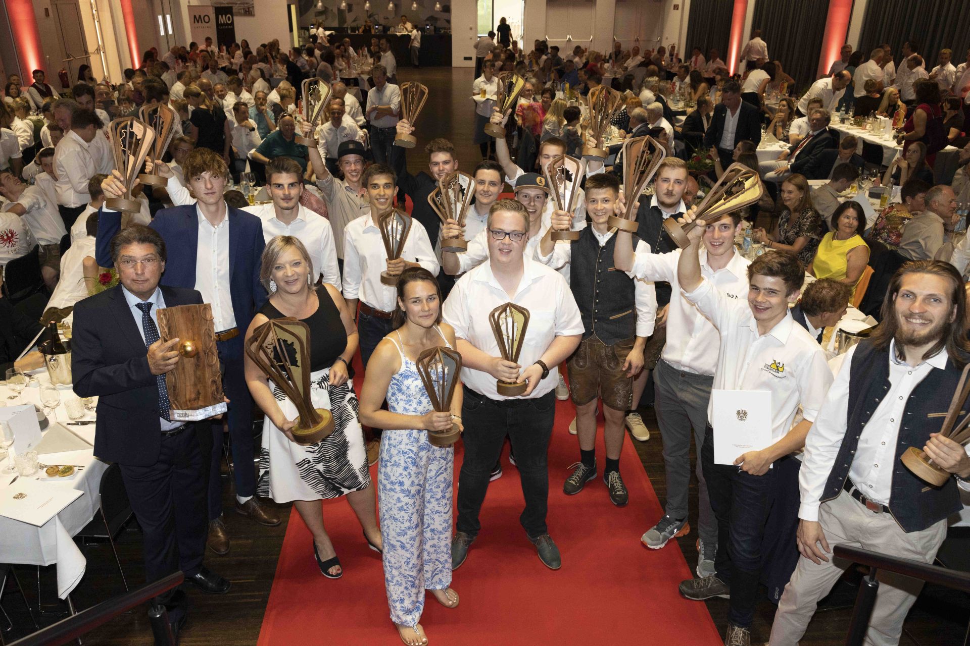Die Eröffnung des Abends nahm Landesinnungsmeister Klaus Nenning vor. Dabei war dem Gastgeber die Freude, dass alles gut über die Bühne gegangen war, sichtlich anzumerken "Es ist einfach wichtig, dass es nach den Verschiebungen jetzt endlich losgehen konnte und die Stimmung war und ist ein einfach super." Nenning sprach über Bedenken im Vorfeld, „ob das neue Prozedere auch die Zustimmung aller Bundesländer finden würde. Aber wir haben uns gemeinsam geeinigt und der spannenden Bewerb sowie die vielen positiven Rückmeldungen haben uns recht gegeben. Die Lehrlinge haben alles gegeben, eine intensive Zeit hinter sich gebracht – jetzt dürfen alle gleichermaßen feiern und den Abend genießen – ob sie es jetzt aufs Stockerl geschafft haben, oder nicht.“ Im Anschluss dankte Bundesinnungsmeister Gerhard Spitzbart allen Beteiligten, zeigte sich „angetan von der guten Stimmung und der perfekten Organisation“ und nahm die Gelegenheit für eine besondere Ehrung wahr: Karl Baliko, langjähriger Landesinnungsmeister in Vorarlberg, BIM-Stellvertreter und insgesamt 25 Jahre in der Innung aktiv, erhielt die goldene Ehrennadel – die höchste Auszeichnung, die die Tischler zu vergeben haben.