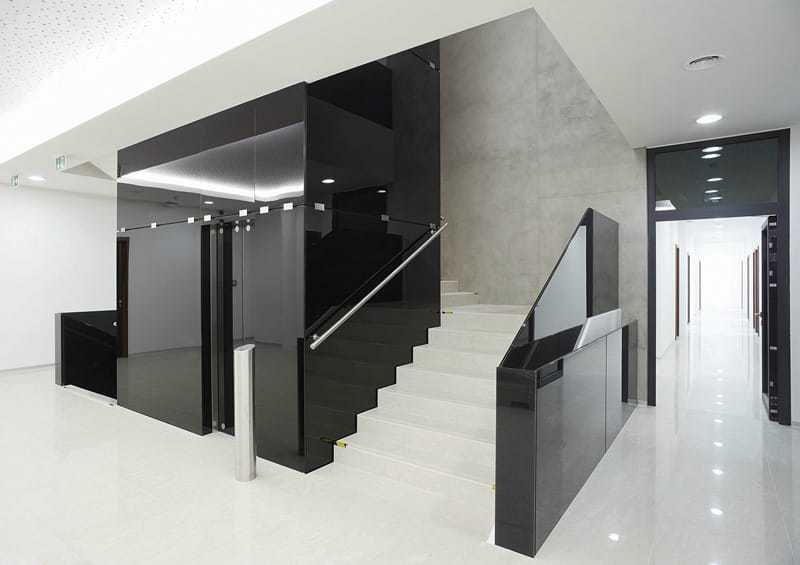 Für ausgefallenes Design sorgen auch dekorative Produkte wie etwa „Matelux“. Auf einer Seite säuremattiert, erstrahlt dieses Glas in satinierter Optik, ist aber mit einer Lichtdurchlässigkeit bis 90 Prozent transparent. Die Oberfläche ist extrem robust gegen Kratzer und resistent gegen Schmutz, so dass das Glas von Architekten auch gern außen eingesetzt wird. Alle diese Gläser sind in verschiedenen Farbtönen lieferbar und lassen sich zu VSG und zu Isolierglas weiterverarbeiten.