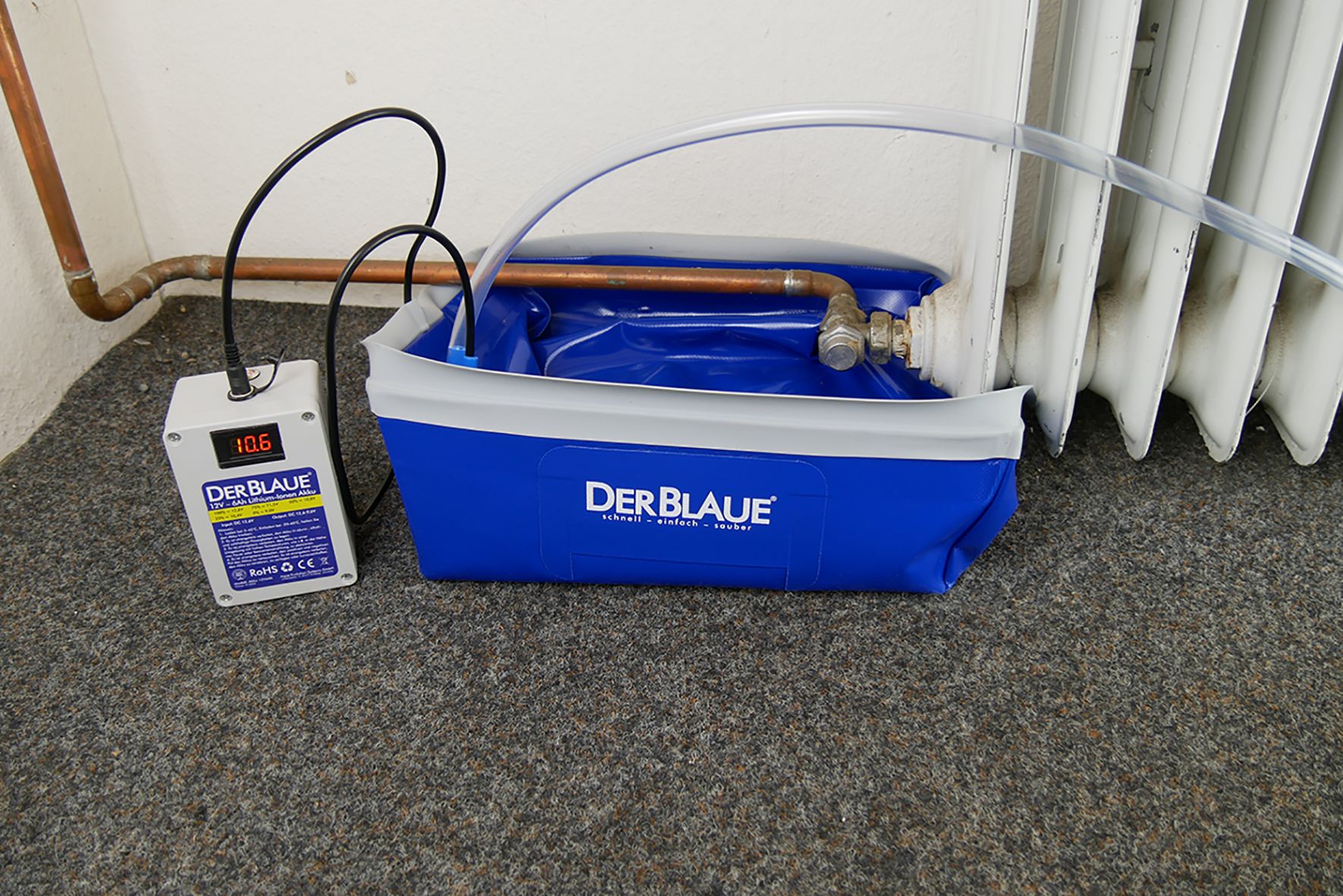"Der Blaue" ist eine formbare und dabei höchst stabile Wanne, die Wasser an allen möglichen und unmöglichen Stellen auffängt. Sie fasst zehn Liter, ist 34 x 34 x 12,5 cm groß und passt sich dank der weichen Dichtlippe perfekt an die Umgebung an. Einmal justiert, bleibt "der Blaue" formtreu stehen. Mit den Biegeelementen aus Metall kann die Wanne perfekt und unendlich oft um Rohre, Verschraubungen und Wandverläufe angepasst werden. Das Wasser wird sicher und sauber abgeleitet und man hat wieder beide Hände frei. Er hat zwei Griffe, ist geprüft bis 60 Grad Wassertemperatur und auch geeignet für Glycolwassermischungen.