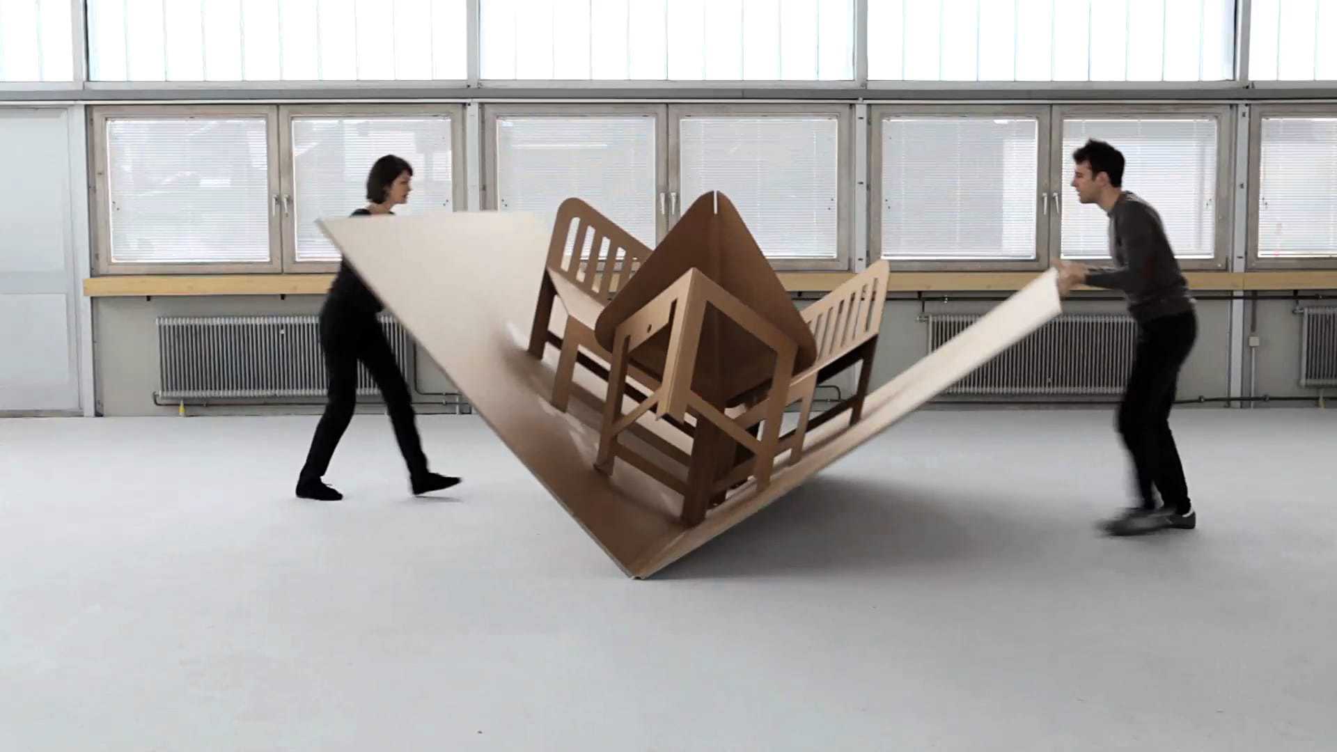 Platz eins für die gute Eckbank, ganz neu interpretiert: Als Pop Up-Variante ist sie aus Karton, zusammenklappbar, flexibel und mobil.