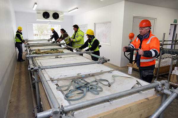 Die Archäologen gehen ihrer Arbeit in einem Kühlraum nach; Museumsbesucher können das Geschehen zu bestimmten Zeiten durch Fenster mit Doppelverglasung verfolgen. Die Arbeit im Kühlraum findet bei weniger als 5 °C statt, um die Boote in bestem Zustand zu erhalten. Die Temperatur stellen die beiden gegenüberliegend installierten GEA Searle-Luftkühler sicher. Bereits ein Kühler würde ausreichen, um den Raum zu temperieren, so dass Wartungsarbeiten an einem der Geräte problemlos erfolgen können. Zur Kälteerzeugung dienen halbhermetische Verdichter von Copeland (P8LL-40X-EWL).