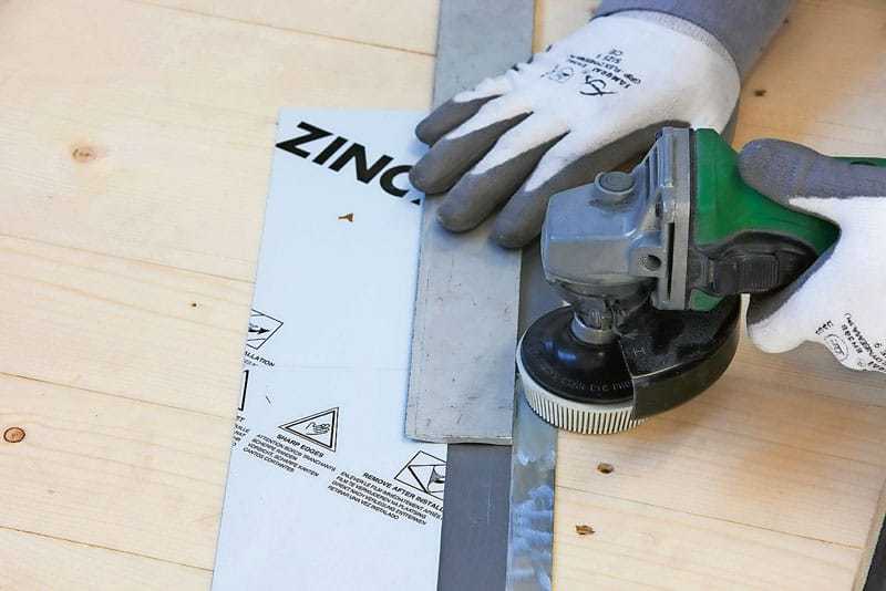 Bei „Pigmento“-Oberflächen und „VMZ Zinc Plus“ müssen die Schutzschichten zunächst abrasiv entfernt werden.