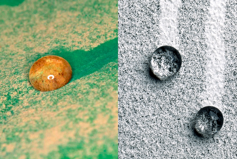 Wissenschaftler beobachteten, dass die Blätter der Lotus-Pflanze nach einem Regen stets sauber sind. Der Grund: die wasserabweisende, also nicht benetzbare Oberflächenstruktur der Pflanzenblätter. Ihre Eigenschaft basiert auf winzigen Mikrostrukturen, wodurch der Schmutz auf den Blättern nur liegen, aber nicht haften bleibt und abgespült werden kann. Nach intensiver Forschung gelang die Übertragung dieses Effekts auf die Fassadenfarbe Lotusan von Sto.