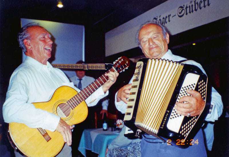 Fortan waren die Beiden bei jedem Glasertreffen sofort an ihren Instrumenten und sorgten mit Musik und Witz für heitere Stimmung und freundschaftliche Beziehungen unter den Kollegen. Beide waren gute Schifahrer und trugen ihre Unbeschwertheit bis nach Tirol, wo sie stets an den legendären Glaserschirennen teilnahmen und noch in der höchsten Altersklasse gegeneinander antraten.