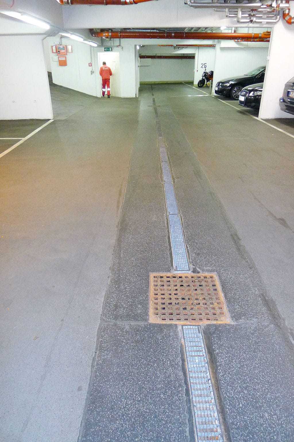 Die Entwässerung der Parkdeck- oder Parkdachkonstruktionen hat über geeignete Entwässerungselemente zu erfolgen. Die Entwässerungsabläufe sind projektsspezifisch an Ölabscheider anzuschließen. Der Einbau von sogenannten Verdunstungsrinnen im Parkdeckbereich hat sich bei vielen Projekten nicht bewährt, insbesondere bei jenen, wo die Parkdeckflächen mit der Außenatmosphäre in direkter Verbindung steht – Frostgefahr der Stauwasserflächen im Winter.