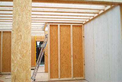Neben einer guten Wärmedämmung benötigen solche Gebäude eine luft- und winddichte Gebäudehülle. Zur Beplankung der Holzrahmen nutzen Planer meist großflächige Holzwerkstoffplatten wie OSB (Oriented Strand Board), nicht zuletzt weil OSB die Rahmen nicht nur aussteift, sondern gleichzeitig die luftdichte Ebene bildet. Unterschiedliche Plattentypen bieten unterschiedliche Luftdichtheiten. Als Maßgabe gilt: je höher die Rohdichte und je besser die Güte der Verklebung der Strands, desto luftdichter die Platte. OSB-Platten von Egger – insbesondere die OSB 4 Top – erfüllen die Kennwerte für hohe bis sehr hohe Luftdichtigkeit.