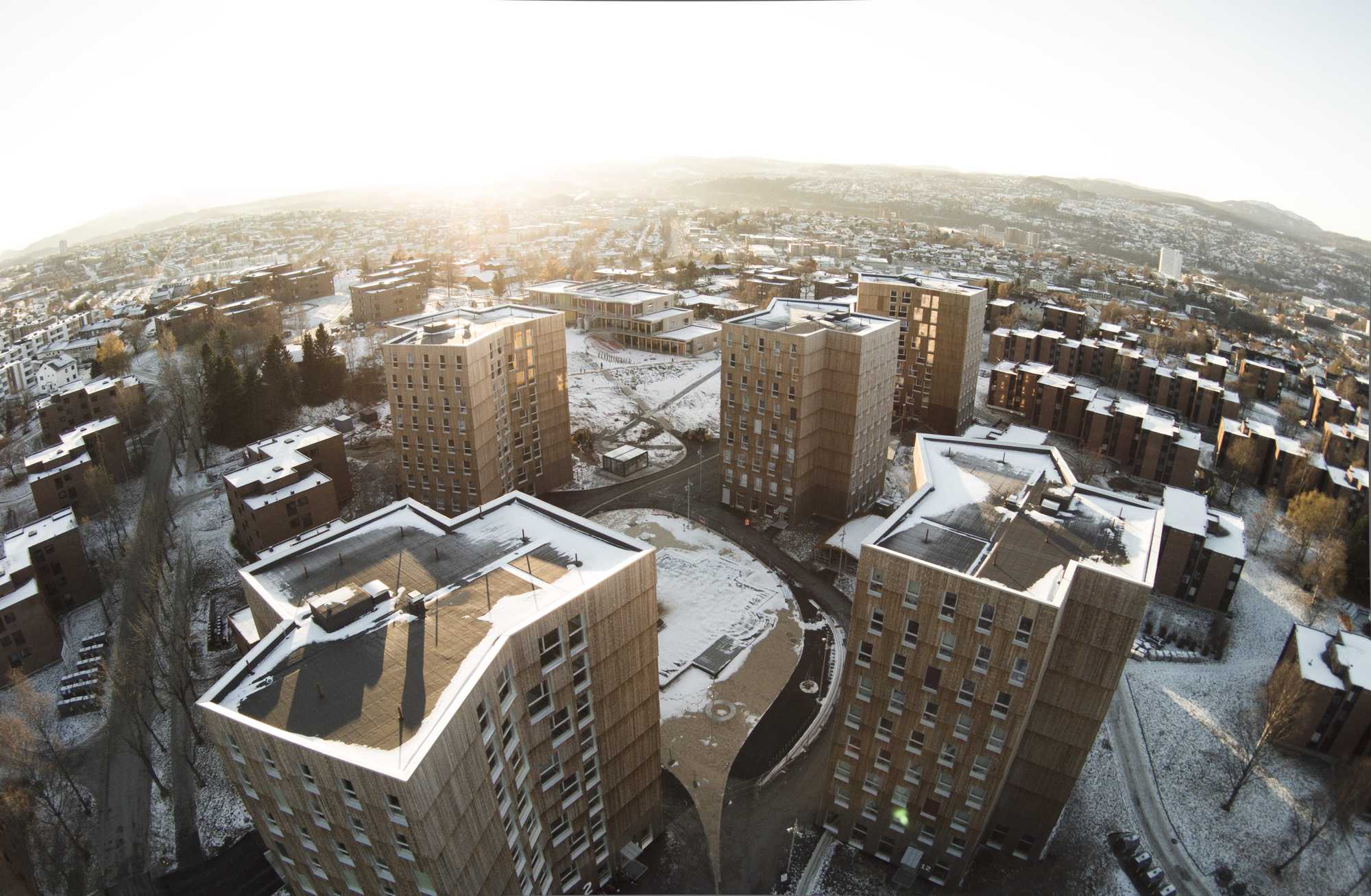 Von den rund 170.000 Einwohnern Trondheims, der drittgrößten Stadt Norwegens, sind etwa 30.000 Studenten – Tendenz steigend. Leistbarer Wohnraum ist sehr begehrt. Nach Studentenwohnheimen in Haugesund und Remmen ist „Moholt 50/50“ die dritte Anlage, die in Brettsperrholz errichtet wurde. „Bauen mit Holz hat in Norwegen eine lange Tradition“, erzählt Herbert Jöbstl, Geschäftsführer von Stora Enso Wood Products in Zentraleuropa. „Ich bin stolz darauf, dass wir einen Beitrag zum norwegischen Holzbauwesen leisten und dem Markt unsere nachhaltigen, holzbasierten Lösungen anbieten können.“ 6.500 Kubikmeter CLT – Cross Laminated Timber aus dem Werk in Ybbs an der Donau wurden für das Projekt nach Trondheim geliefert. Nachhaltigkeit war bei der Umsetzung ein wichtiger Aspekt, ein Grund mehr, sich für Holz als nachwachsenden Rohstoff, der CO₂ langfristig speichert und für eine gute Ökobilanz sorgt, zu entscheiden.