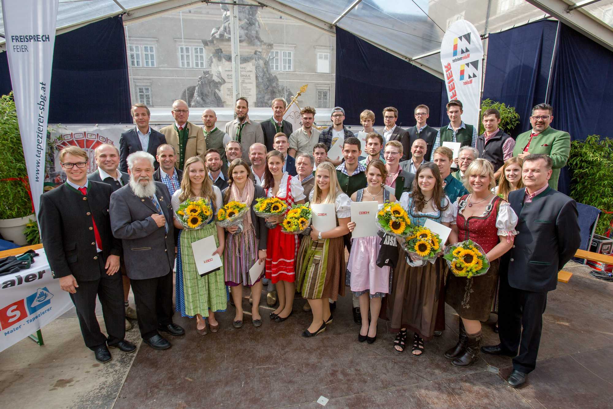 Die beiden Bundesinnungsmeister Erwin Wieland und Manfred Judex freuten sich, dass die Landesinnung Salzburg diese Tradition, das Ende der lehrreichen, arbeitsintensiven und hoffentlich auch etwas unbeschwerten Lehrzeit öffentlich und würdig zu feiern, vor Jahren hat wieder aufleben lassen und seither intensiv pflegt: Die Lehre erhalte so den Stellenwert, den sie heute mehr denn je verdiene.