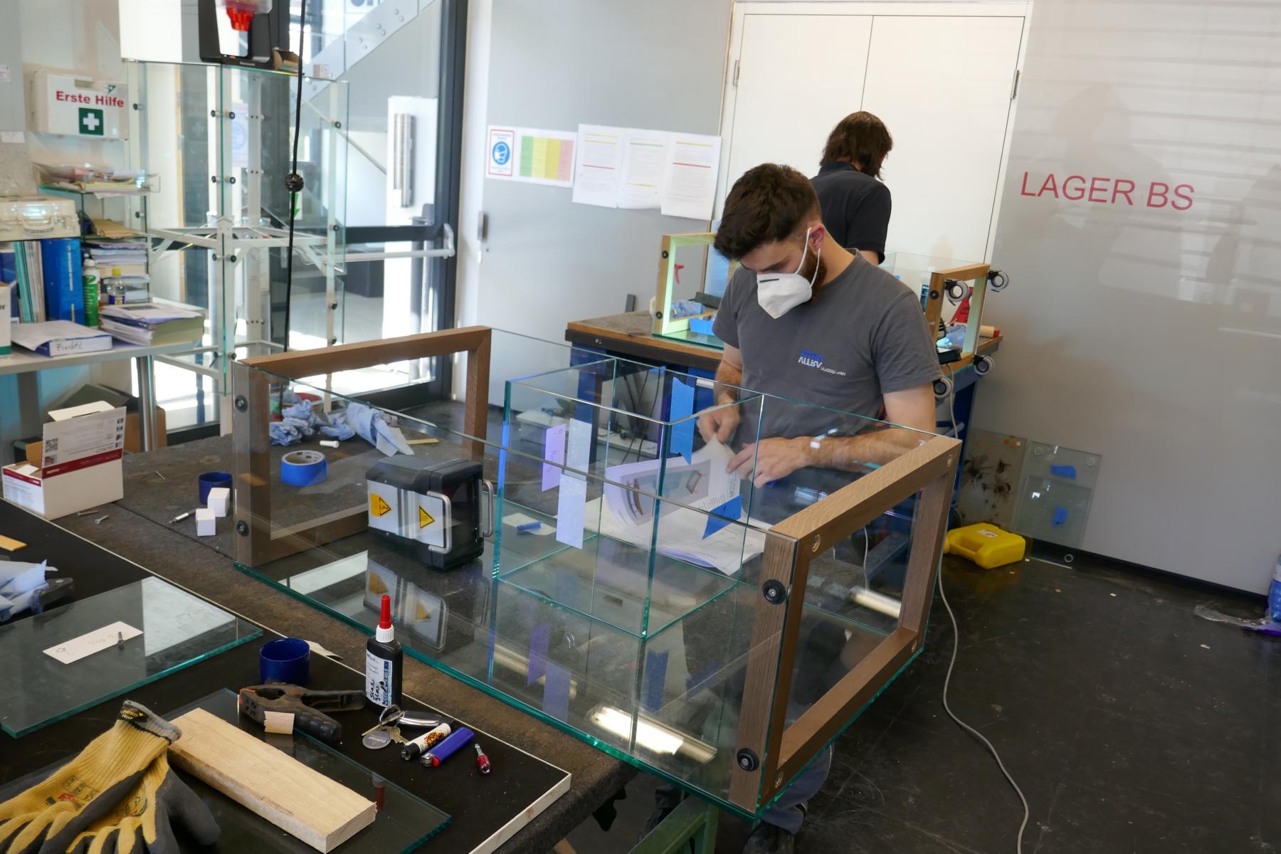 „Wille und Einsatz haben sich letztendlich ausgezahlt, und so konnten wir annähernd planmäßig unseren Meisterkurs beenden“, erzählt der Kursleiter. An diese Stelle gilt besonderer Dank dem gesamten Team – bestehend aus Markus Anker, Rudolf Berti, Martin Grindhammer, Michael Marte, Andreas Merth, Evelyn Pichler, Walter Stackler und Martin Waldhart. Und natürlich den großzügigen Materialspendern der Meisterprüfung: Glas Gasperlmair und Glas Marte.