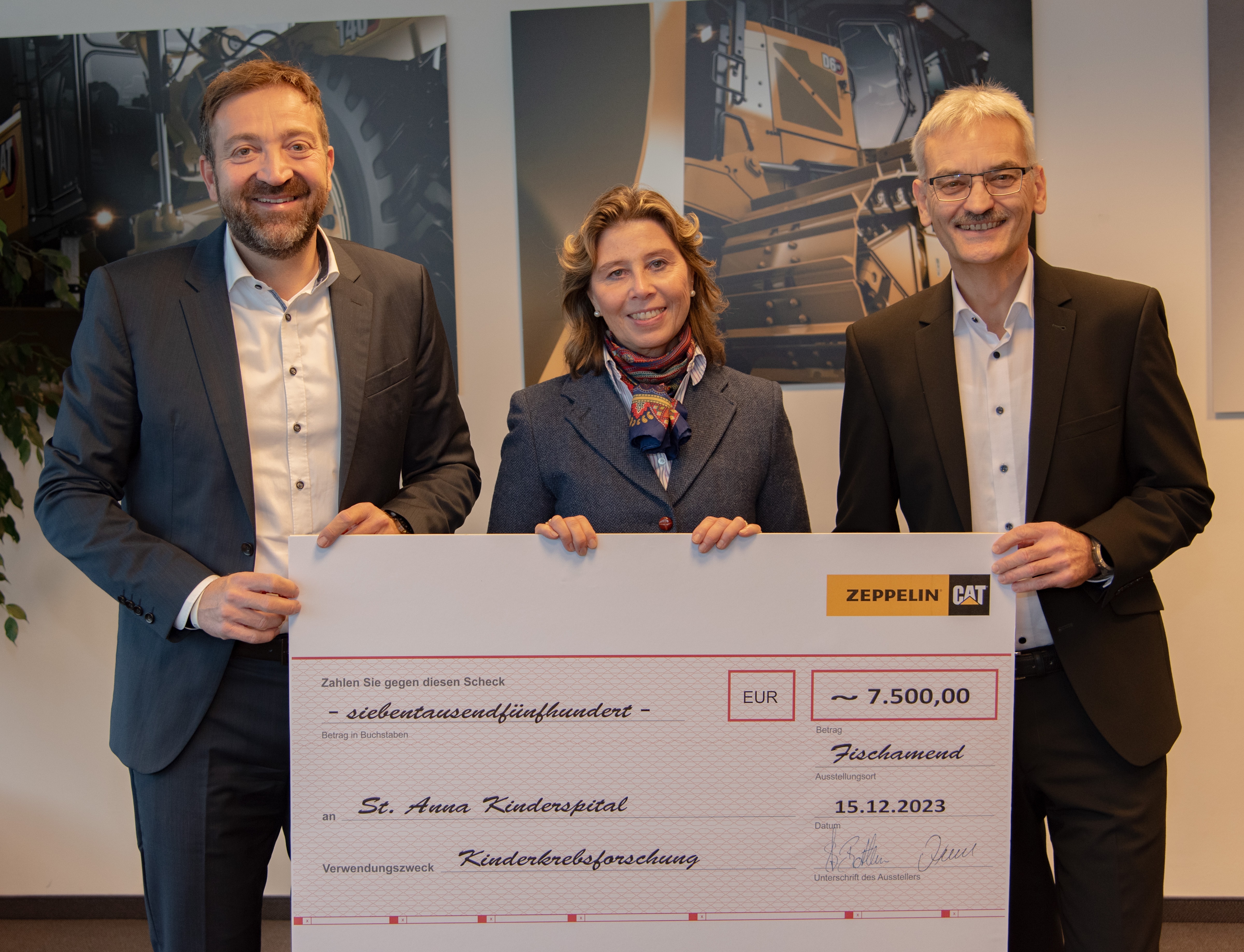 Die Hilfe hat Tradition: Zeppelin Österreich unterstützt auch 2023 die St. Anna Kinderkrebsforschung. Stephan Bothen, der Vorsitzende der Geschäftsführung, und Geschäftsführer Michael Härtel überreichten der Leiterin des PR- und Spendenbüros der St. Anna Kinderkrebsforschung einen symbolischen Scheck über 7.500 Euro. Jährlich sind etwa 300 Kinder und Jugendliche in Österreich von der Diagnose Krebs betroffen. In den vergangenen Jahrzehnten konnte die Forschung im Bereich der Kinderkrebserkrankungen große Fortschritte erzielen.