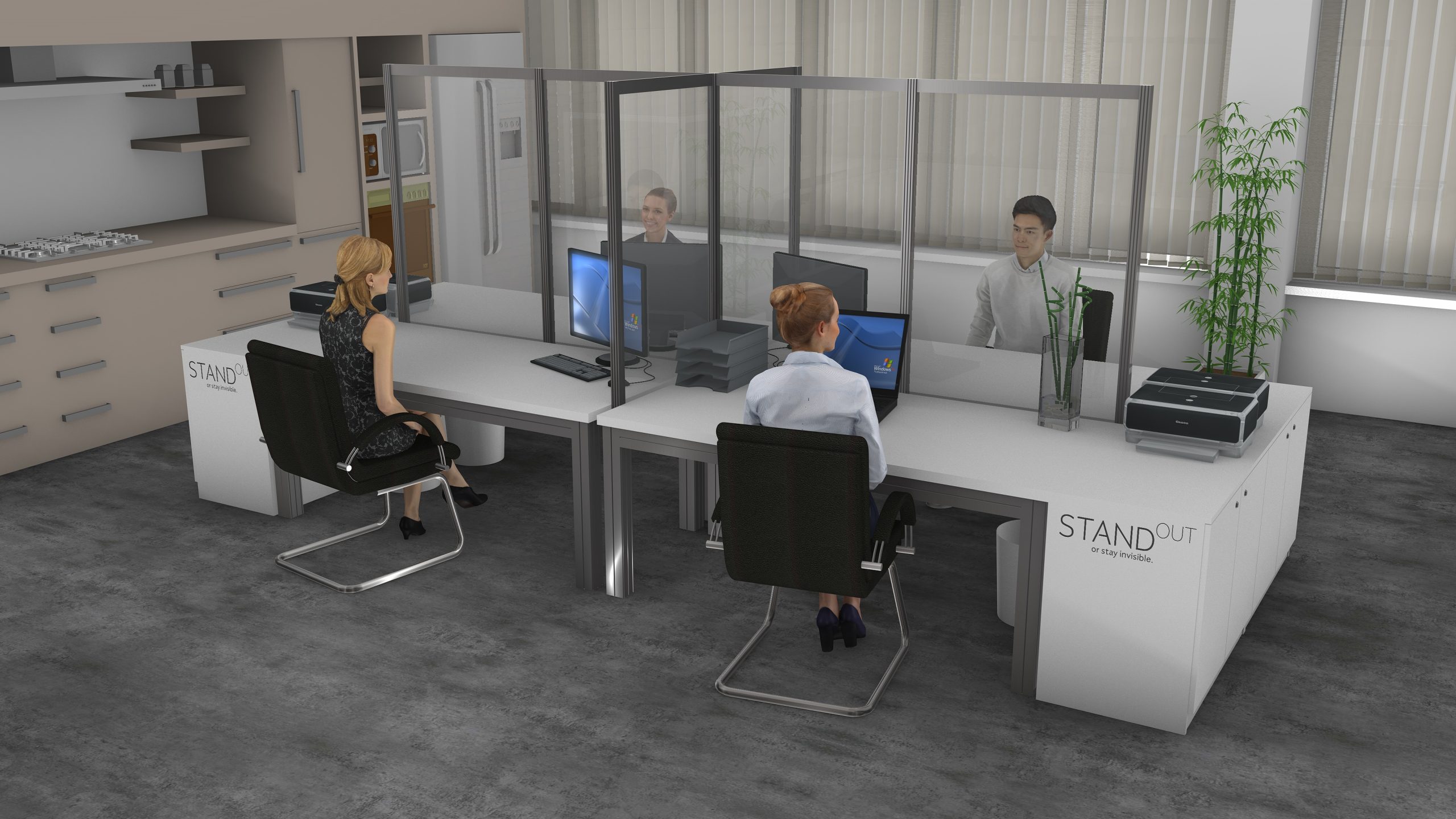 Die Sorge, wie schütze ich mich und andere vor einer Ansteckung durch das Coronavirus COVID-19, beschäftigt derzeit alle. Auch Unternehmen, die entweder bereits jetzt oder spätestens nach der Wiederaufnahme des Normalbetriebs mit Schutzmaßnahmen in der Arbeitswelt leben müssen. Mitarbeiter von Standout haben nun mit "CO-PS" - Corona Protection Shield - eine Produktserie entwickelt und zur Marktreife gebracht, die dem Schutz vor der Ansteckung durch Coronaviren per Tröpfcheninfektion dient. Es handelt sich dabei um mobile Elemente aus Plexiglas, die in verschiedenen Größen und Ausführungen situationsabhängig eingesetzt werden können. Die Produktpalette reicht vom einfachen Aufsteller auf Schreibtischen über mehrteilige aluminiumgerahmte Konstruktionen für Multideskplätze oder Rezeptionspulte bis hin zu raumhohen, nur auf der Zugangsseite offenen Schutzkabinen sowie mobilen Trennwänden für Großraumbüros. Der Einsatz ist überall dort sinnvoll, wo Menschen in einem Raum zusammenarbeiten und untereinander sowie mit Kunden in persönlichen Kontakt treten: Büros (bis hin zu Großraumbüros) von Organisationen und Unternehmen, Ämter, Arztpraxen, Apotheken, Kanzleien, Empfangsbereiche, Einzelhandel – die Liste lässt sich beliebig fortsetzen.