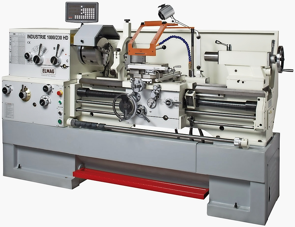 In den letzten Jahren hat Elmag sein Drehmaschinen-Programm weiter ausgebaut und punktet mit guten Leistungsdaten und einer umfangreichen Serienausstattung. Die konventionellen Drehmaschinen bieten eine Spitzenweite von 300 bis 3.000 mm sowie Drehdurchmesser von 180 bis 800 mm. Das Programm reicht von der ergonomisch optimierten Klein-Drehmaschine bis zu extra schweren Spitzen-Drehmaschinen für die mittlere Serienproduktion. Viele Drehmaschinen sind mit einer hochwertigen digitalen Positionsanzeige ausgestattet. Elmag liefert die Drehmaschinen betriebsbereit, einjustiert und inklusive durchgeführtem Probelauf auf allen Schalt- und Leistungsstufen. Bei den Zug- und Leitspindelmaschinen bietet das Unternehmen mehrere Baureihen an, somit dürfte man für fast jeden Anwendungsfall fündig werden. Je nach Baureihe und Modell sind die manuell bedienbaren Drehmaschinen für kleine bis zu richtig schweren Aufgaben prädestiniert. Und über die günstigen Preise werden sich besonders die Lehrwerkstätten freuen. Dennoch liegen die technischen Daten auf dem Niveau von modernen Universaldrehmaschinen: gute Drehzahlauswahl, hochwertige Digitalanzeigen, kräftige Zugspindeln für hohe Schnittleistung und Feinbearbeitung, präzise Leitspindeln für die Gewindebearbeitung. So sind etwa die Modelle der Serie „Industrie“ robust gebaute, hoch belastbare Leit- und Zugspindeldrehmaschinen mit einem massiven Graugusssockel und steifen Maschinenbett. Damit gibt es auch bei schweren Zerspanungsaufgaben im Maschinen-, Stahl- und Behälterbau mit großen Schnitttiefen keine Vibrationen.