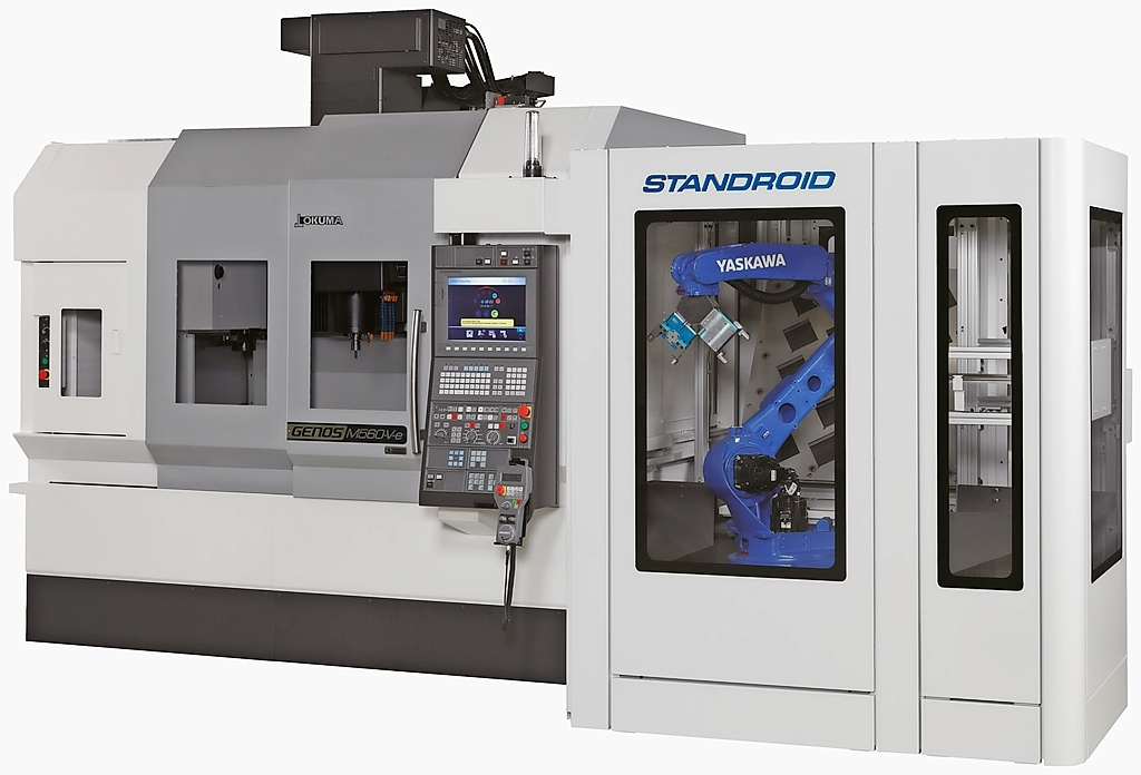 Sehr hohe Werkstückgenauigkeiten bei Schwerzerspanung und Feinbearbeitung schafft das vertikale Bearbeitungszentrum Genos M560-V-e, ausgestattet mit einem vollintegrierten "Standroid". Dieses vereinfachte Robotersystem ist ideal für die Automatisierung von klein- und mittelgroßen Serien. Die Bauteile sind sehr schnell fertig, dafür sorgt auch die Spindel mit einer Drehzahl von 15.000 U/min und 199 Nm Drehmoment. Die Genos M560-V-e ist mit der herstellereigenen OSP-Steuerung ausgestattet. Das Thermo-Friendly-Concept gewährleistet zudem eine zuverlässige thermische Stabilität.