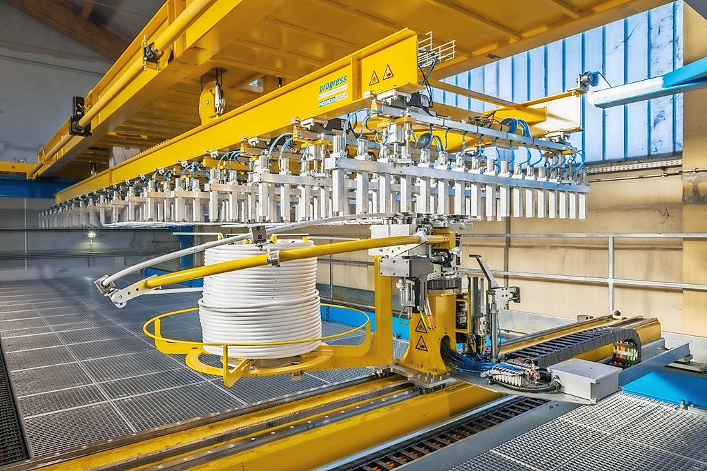 Genau dieser Roboter wurde nun in Betrieb genommen. "Der Roboter übernimmt die Daten aus dem Elementplan eines Fertigteils und weiß danach, wie die Rohre zu biegen sind. Aus den Daten des Palettenbelegungsprogramms kennt er außerdem die Lage des Fertigteils auf der Palette. Er biegt also das Aluverbundrohr in die gezeichnete Form und legt sie an die exakt dafür vorgesehene Lage in die Schalung für das Fertigteil ein", weiß Werksleiter Anton Glasmaier. Bereits vor der Eröffnung des Roboters sind schon 20.000 Quadratmeter der neuen Mischek strong & active in Auftrag gegeben. Der Roboter selbst wurde direkt für die Ansprüche der Produktion des Fertigteils Mischek strong & active geplant und produziert und ist einer von drei hochmodernen robotisierten Anlagen im Mischek Werk. Ein Schalungsroboter, der automatisch nach Elementplänen Schalungen verlegt, und eine Mattenschweißanlage für die automatische Herstellung von Bewehrungsmatten sind schon seit 2019 im Einsatz. (uw)