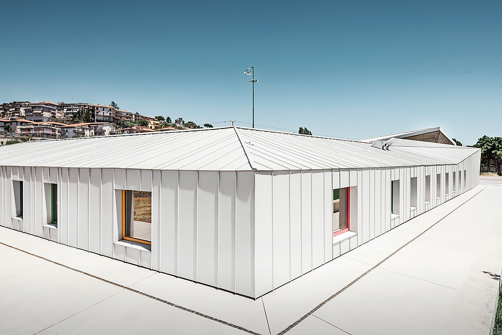 Der Verarbeiter Piero Stanco, dessen Firma LS Edil mit der Detailplanung und Verlegung der weißen Gebäudehülle aus Prefalz beauftragt wurde und eng mit dem Architekturbüro zusammenarbeitete, freut sich, dass mit WonderLAD eine wichtige bauliche Innovation auf Sizilien realisiert wurde. Bei der Fertigstellung des Heims war Stancos Geschick vor allem bei der Umsetzung der besonderen Fassadenbekleidung mit unterschiedlich breiten Scharen gefordert – durch diese war es möglich, dem Baukörper mit einer Oberfläche von insgesamt 8400 Quadratmetern mehr Dynamik zu verleihen. (uw)