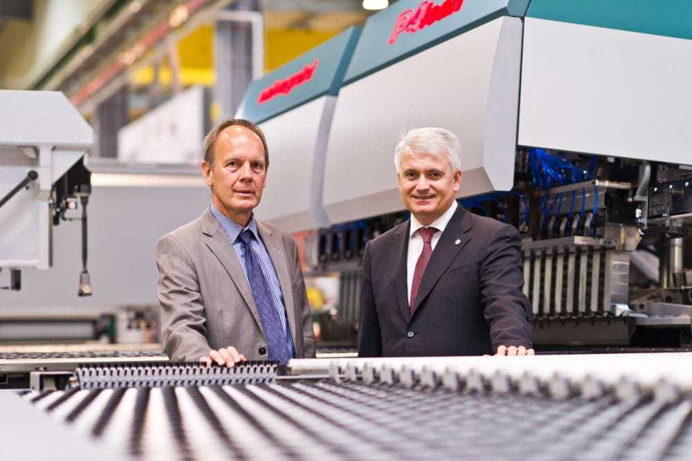 Die Salvagnini Maschinenbau GmbH in Ennsdorf/NÖ ist der Entwicklungsstandort für Biegeautomaten. Die österreichische Tochter des italienischen Salvagnini-Konzerns ist die weltgrößte auf Biegeautomaten spezialisierte Produktionsstätte und peilt heuer mit 370 Mitarbeitern einen Umsatz von € 100 Millionen an. Die Mutter mit Sitz in Sarego (Vicenza) hat zuletzt mit insgesamt 1.450 Beschäftigten einen Konzernumsatz von 320 Mio. Euro ausgewiesen. Salvagnini bietet für den gesamten Blechbearbeitungsprozess vom Lager, über das Stanzen, Laserschneiden bis zum Abkanten und Biegen Spezialmaschinen – eine Industrie 4.0-Lösung für den Gesamtprozess. „Diese Produktionsprozesse haben wir total vernetzt“, sagt Salvagnini-Technikchef Kunze. „Wird der Produktionsauftrag gestartet, holt sich die Anlage das gefordert Blech aus dem Lager und führt bis zum Endprodukt alle Produktionsschritte vollautomatisch durch.“ Zahlreiche internationale Konzerne wie zum Beispiel Hörmann, Kone, Schindler oder Zumtobel setzen auf Biegeautomaten von Salvagnini.