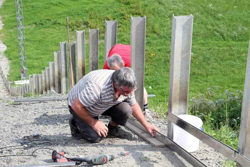 Eingesetzt wurden die Schraubanker zum Befestigen der metallenen Anlaufspur-Elemente sowohl auf den Sommer- als auch den Winterspuren aller vier Schanzen. Die Montage erfolgte in drei Schritten: Loch vorbohren, das Bohrmehl entfernen, zuletzt die Schraube eindrehen. Gerhard Hölzl zeigte sich begeistert von den technischen Eigenschaften des Schraubankers: „Wir sind ja alle keine Profis, aber die Schrauben ließen sich problemlos eindrehen – versteckte Montagefehler sind mit Multi-Monti ausgeschlossen. Und dadurch, dass keine Aushärtezeit wie bei anderen Dübeln nötig war, ging alles sehr schnell“, berichtet Hölzl.