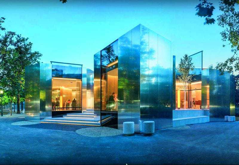 Eine reflektierende Aluminiumfassade aus Amag-Architekturblechen liefert das Bühnenbild für das Haubenlokal „Steirereck“ im Wiener Stadtpark.