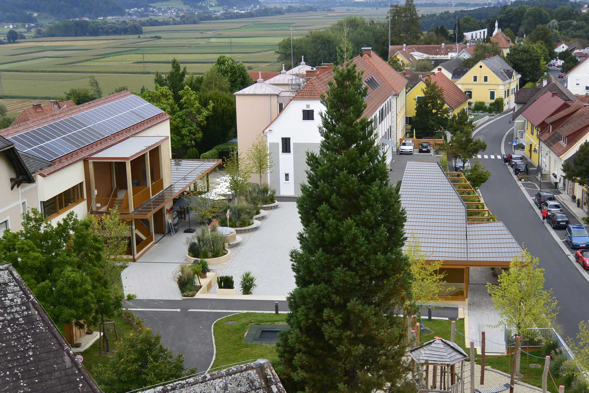 Der lange Wunsch nach einem Hauptplatz für Kirchberg war Grund für die Errichtung eines neuen Kirchparks im südoststeirischen Kirchberg an der Raab. Vulkanland Metall übernahm bei der Realisierung des Großprojekts zahlreiche Aufgaben. „Wir haben Stahlbaukonstruktionen errichtet. Außerdem wurden von uns die Geländer und Handläufe gefertigt sowie die Vordächer montiert", erzählt Harald Pachler, Geschäftsführer von Vulkanland Metall. Der Kirchpark verfügt über zwei Photovoltaik-Anlagen. Eine große befindet sich auf dem Dach des Betriebsgebäudes. Gestaltung und Montage der zweiten Anlage auf einer Pergola waren laut dem Unternehmer die größten Herausforderungen des Projekts. „Mit der Photovoltaik-Anlage auf dem Dach werden 17 kW/h aus Sonnenenergie gewonnen, mit der kleineren 8 kW/h. Mit dieser Technik liegt der Ort ganz im Trend von grüner Energie, Nachhaltigkeit und Umweltschutz", so Pachler. Darüber hinaus zeichnet sich Vulkanland Metall für Alu- und Brandschutzportale, Alu-Schiebetüren sowie Verglasungen verantwortlich.
