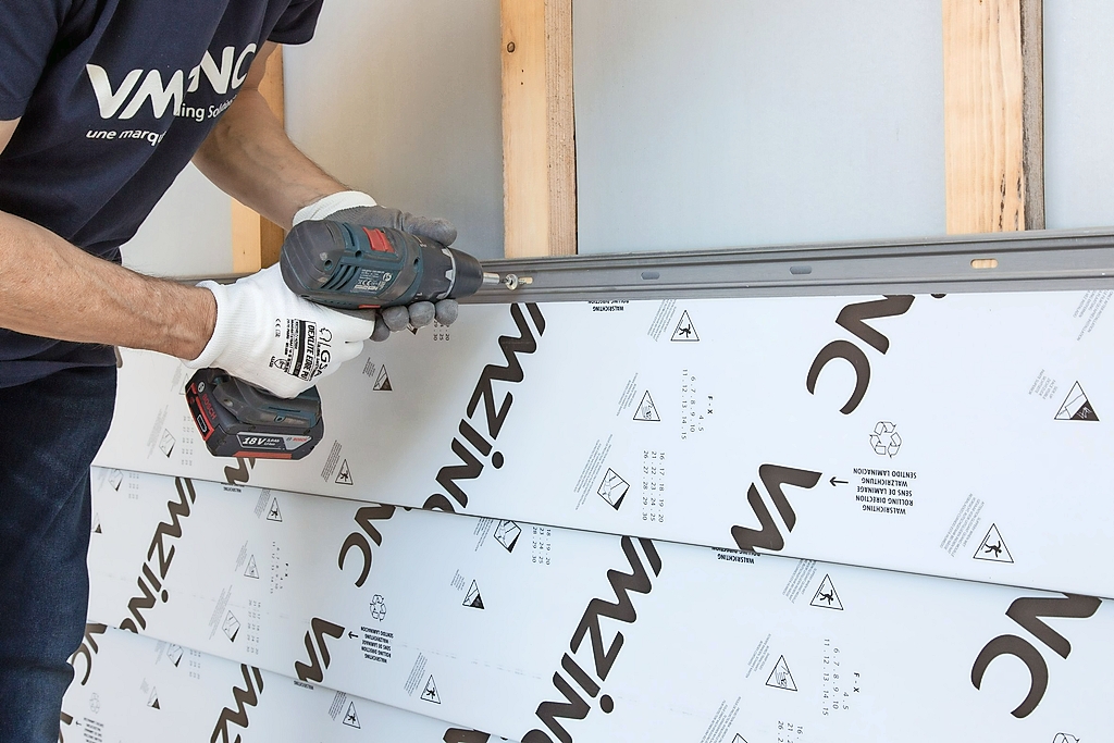 Eine nicht vollflächig unterstützte Holz- oder Metallunterkonstruktion dient den Stulppaneelen als Befestigung. VMZinc empfiehlt, bei größeren Flächen die Metallvariante zu verwenden. Die einzelnen Paneele fügen sich ganz unkompliziert und sicher durch Einrasten ineinander. [gr]