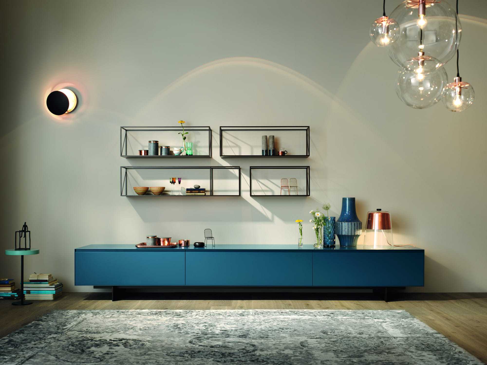 Prächtiges Blau: Für das edle Lowboard Ando von Haas kam Aduro MDF-4in1 von Adler zum Einsatz.