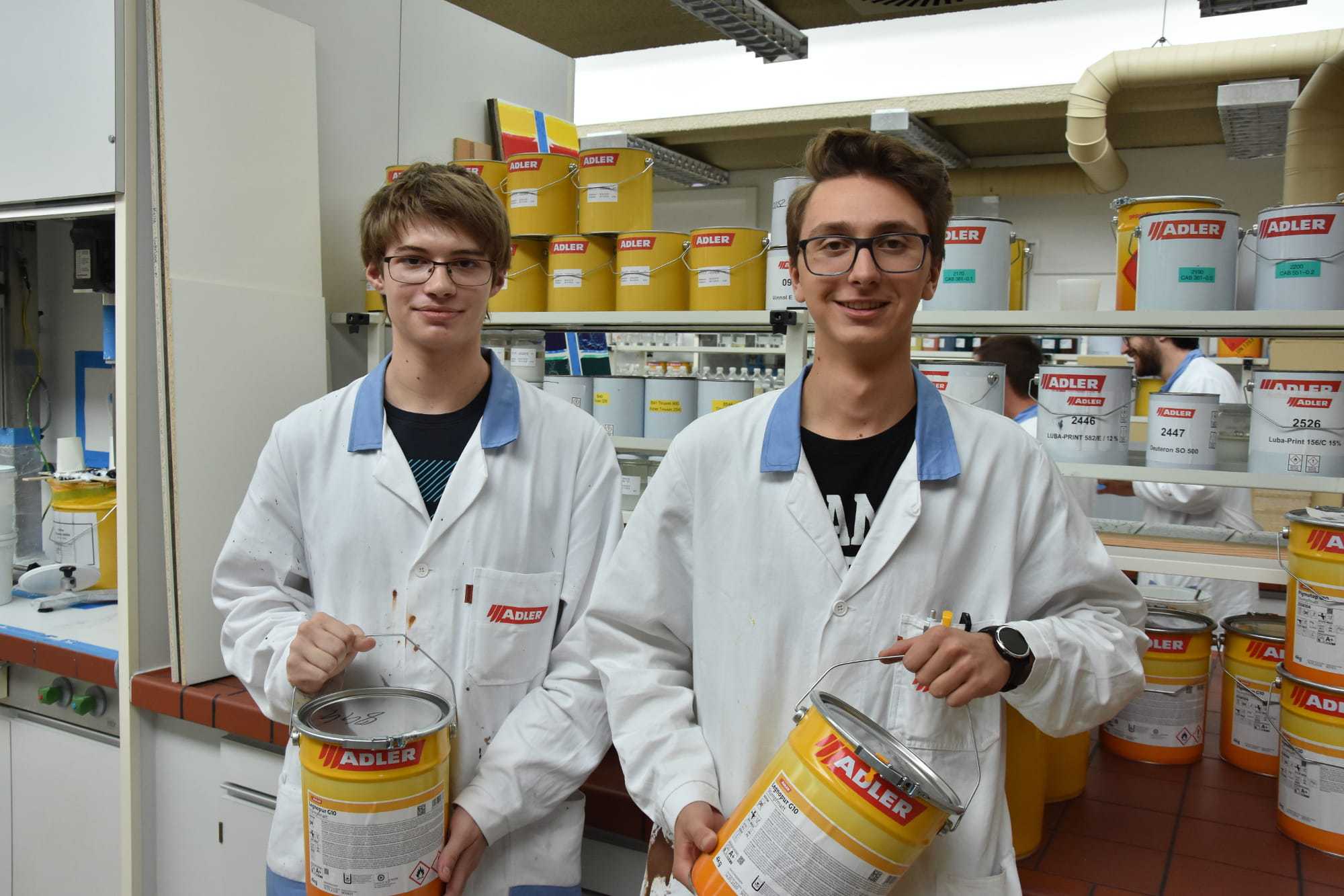 Gefragt ist der Sommerjob bei Adler auch bei Nachwuchsforschern. Insgesamt 13 junge Menschen bereicherten im Juli und August die Adler-Entwicklungsabteilungen. Zwei davon sind Jakob Florian Schinnerl und Marco Lechner. Sie besuchen die Chemie-HTL Kramsach – die Arbeit im Labor ist eine wertvolle Ergänzung zu ihrer Ausbildung. Die beiden angehenden Fünftklässler Matthias Fasching und Matthias Kleinlercher forschen und feilen an ihrer Diplomarbeit. „Sie erkunden eine neuartige Form von Lacken, sogenannte Epoxidlacke“, so Adler-Ausbildungsleiter Michael Enders. Vom jugendlichen Forscherdrang profitiert natürlich auch das Unternehmen: „Schon oft sind bei Projektarbeiten spannende Ergebnisse herausgekommen, die auch für uns interessant waren“, sp Enders.