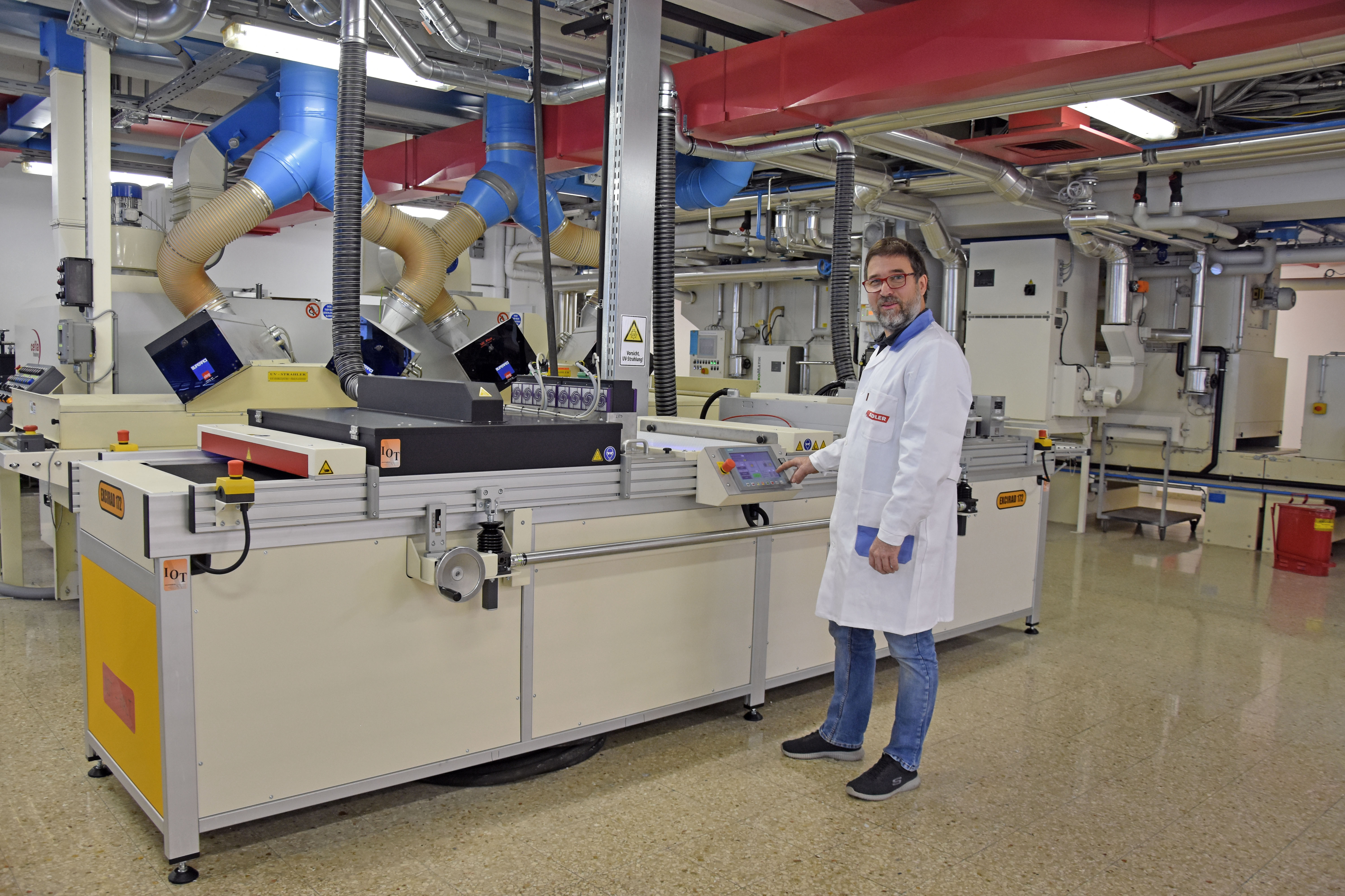 Extrem niedriger Glanzgrad und extrem kratzfeste Oberfläche: Was lange Zeit als Widerspruch galt, macht die Excimer-Technologie möglich. Um seine Kunden bei der Einführung dieser Beschichtungstechnik bestmöglich zu unterstützen, hat der Tiroler Lackhersteller Adler seine Anwendungstechnik im Werk in Schwaz mit einer leistungsfähigen Excimer-Anlage aufgerüstet. Insgesamt hat das Unternehmen einen mittleren sechsstelligen Euro-Betrag in die neue Anlage investiert.