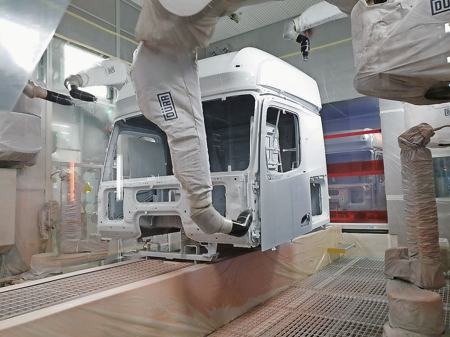 Mit „Eco Paint Process Trucks“ (EP-T) ist es den Ingenieuren der Daimler Truck AG gelungen, einen umweltfreundlichen und flexiblen Lackierprozess für Lkw-Fahrerhäuser zu entwickeln. Dabei werden die Lackmaterialien in einer Box vollautomatisiert aufgetragen. Zusätzlich konnte eine energieeffiziente und ressourcenschonende Trockenabscheidung des Lackoversprays realisiert werden. Das Temperaturniveau der Decklacktrocknung ist von 140 Grad auf 80 Grad gesenkt worden. Mehr als 50 Prozent weniger CO₂-Emissionen und eine Verkleinerung der Lackierbox um 60 Prozent sind weitere Highlights dieses ausgezeichneten integrierten Lackierprozesses.