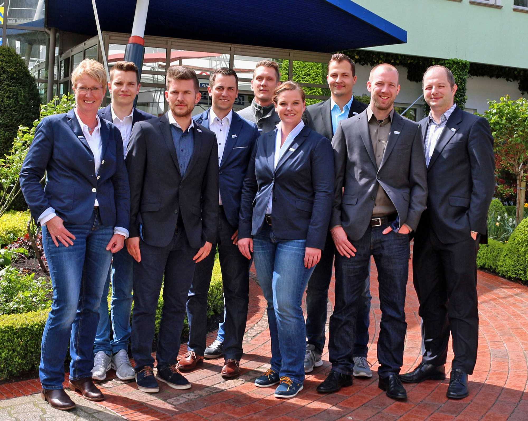 Elke Köster (Assistenz Personalentwicklung Vertrieb), Markus Knippert, Simon Wulle, Andreas Meier, Carsten Thürk, Lilly-Louisa Spirgatis, Christian Krause, Sebastian Kramer und Stefan Juli (Leiter Personalentwicklung Vertrieb).